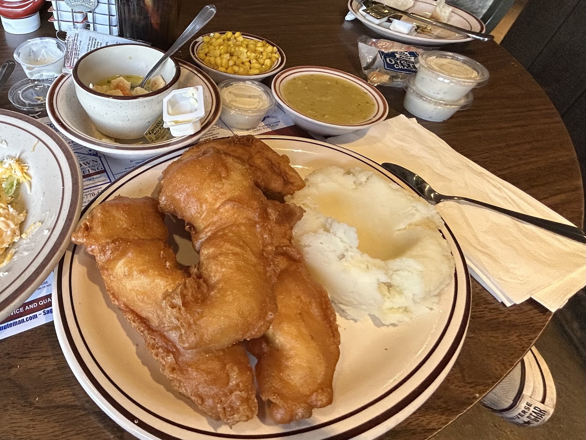 Read moreWe found this gem by accident when we visited Flint on Friday 10/16/2020. We saw the rating of 4.6 stars on Google so we decided to give it a try for our hungry stomachs 😊. We arrived around 2 pm and it seemed like no cars at all on the parking lot. We thought 🤔 "Wait a minute .. thought it's a 4.6 ⭐ restaurant, but why it's empty??". Maybe the Covid-19 impacted the business a little. Nonetheless we decided to check it out. There's a sign on the entrance door: "No mask no entry". Inside the setting was so warming and relax, kind of southern setting. We saw there were couple tables of customers seated and dining. The server greeted and invited us to sit anywhere we'd like. First impression, it's not a franchise so food must be amazing, based on the high rating. Menu is simple but carries so many delicious options. Second impression, the server was really nice and welcoming, so customer service is priority. Once the foods were delivered rather fast, that's the third impression kicked in 😜. And finally, the food tasting began .... whoaaa 😮😮 .. speechless 😳. Fourth impression .. all foods were so tasteful and delicious. We ordered Olive Burger and Fries, Fish and Chips, Seafood Platter. Onion ring was to die for. Clam chowder was delicious. And the Johnnycake was mouthwatering 🤤. We even ordered fried chicken, chicken strips and buttermilk hotcakes to go (we ate them at home after 2 hours driving and taste was still delicious!!). Everything is cooked with love from Grandma's Recipes. Therefore we gave 5 ⭐⭐⭐⭐⭐ for this small gem in Flint. For sure we'll be back in the future. Hopefully they will still be in business after 25 years serving the local community and customers from outside Flint 🙏🏻😊 P.S. By the way .. few minutes after we arrived, several more customers started to dine...