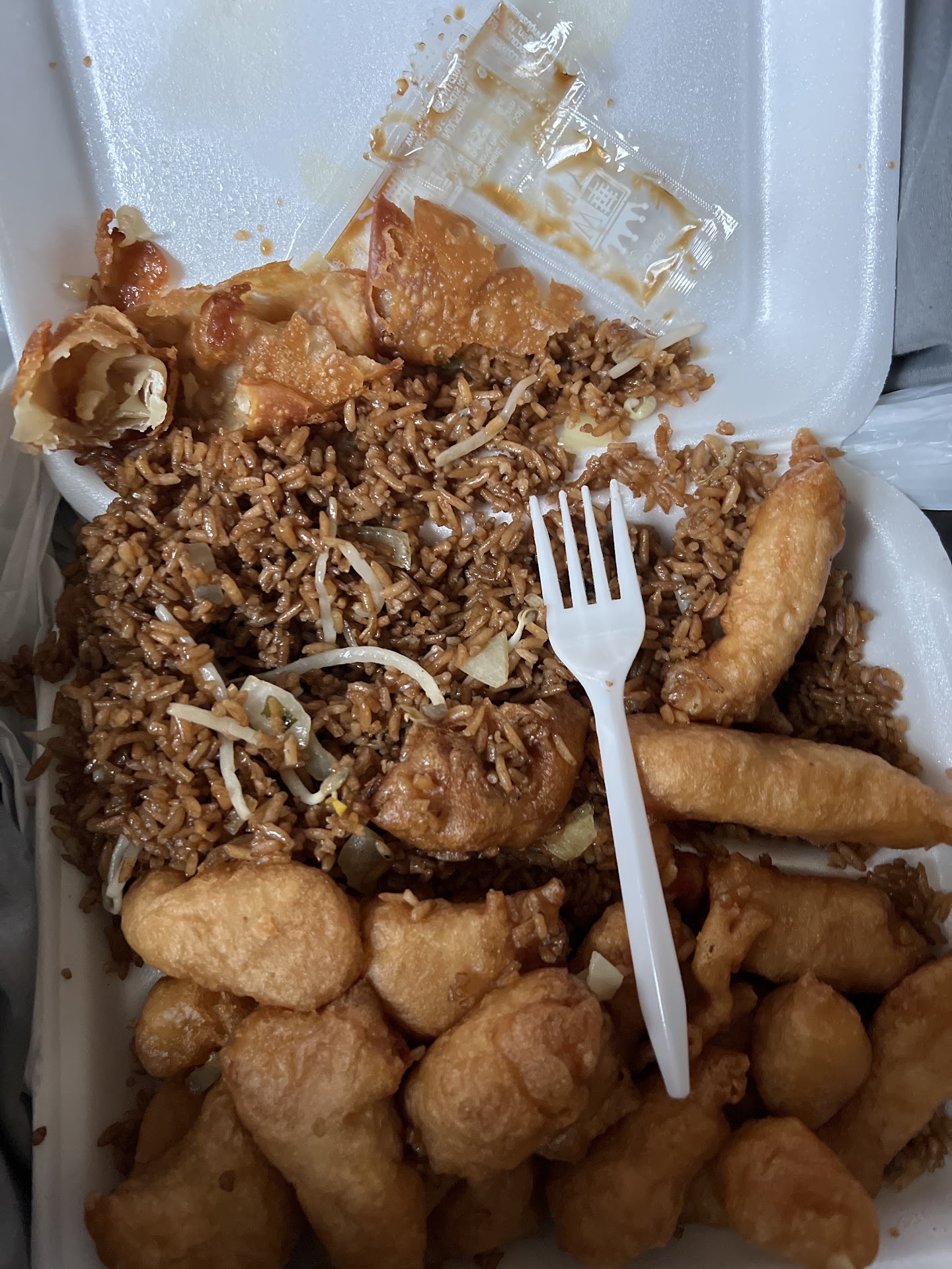 Wish I could have taken a picture first. The 5. Fried Crab Cheese wasn’t the best. Kind of runny, and actually lacks crab. Taste more like honey/sugar cream cheese, with a hint of onion. I opted to get shrimp friend rice with my C2. Sesame Chicken Combo...it had 4-5 pieces of shrimp placed on top to make it look like it's was throughout. However it was not and there is an extra $2.33 charge to get 4 pieces of small shrimp. I'm not mathmatician sure but those numbers dont add up. The 12. Vegetable Spring Roll is pretty gross. Looks just like the picture, uncooked and mushy on the inside. The egg roll that came with the main dish was tasty though. Though the sauce is the right color definitely has a water after taste...all in all try it yourself to see if my review is on point or not. I ordered via DoorDash and it’s only 7 minutes away...