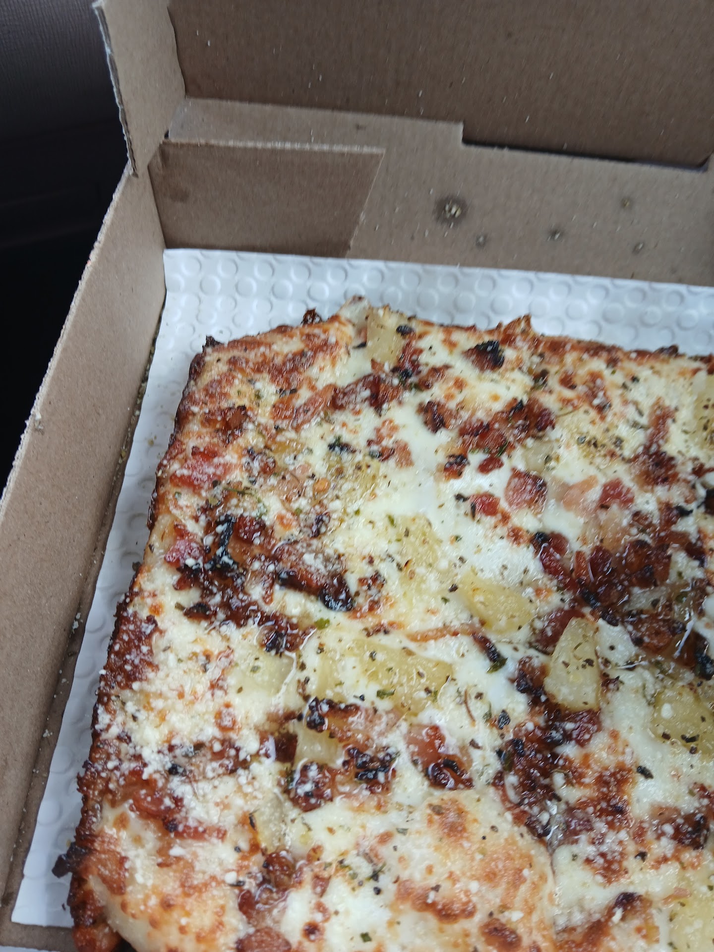 This is the first and last thing me I will ever order from this location. It actually was an accident to order from here. I have nothing positive to say about this my order or experience. The lady was rude. The order was placed in the little pickup area. Which was fine I informed the lady that I did not get a code with my order I placed. And she insisted that she needed to see my phone to see the name on the order. And I kept telling her that there is nothing on my phone and that my name was .... Which on the window only had my first name and last initial. I went out to get my phone to show her that there is nothing on my phone. And when I walked in I walked back in on them talking crap about me. I showed her my phone that there was nothing on my phone that would show my name or show the order. Kevin Sistine that they can't open that door just for anyone that it's their policy. And I tried to tell her that I would go out to the car and get my driver's license with my name on it and she kept insisting that she had to see the order on my phone. Finally somebody that was working cool never came to the window so I have no idea who they were. Told her just give her the pizza. And she kept muttering about how they can't open that door while she was over there opening the door for the order. And then really snotty said take your order. I had to wait for the door to open in order to get my order. I got my order out and turned around to walk out when I had got to the door and it shot I heard through the close door her screaming and I turned around and went back in. There were two ladies that were laughing I am assuming that she startled them with her scream because then in a calm voice she turned to them and said I forgot my sauce. She put sauce on the little turntable and spun it around toward me and I left. I got home and the pieces of pizza were not caught all the way through I had to use scissors to cut through the pizza. But the slices were all wonky. Some slices were not even 2 in wide where other slices were over 6 in wide. I had ordered a ham and pineapple pizza with light sauce there was no sauce. I had ordered two orders of crazy bread and there were some slices that might have been three maybe four inches at Max and length and then some that were over six or seven inches in light some were fat and some were really skinny.. the edges the crust of the pizza were hard and slightly burnt. I wish I would have taken a picture to compare all of the different sizes the...