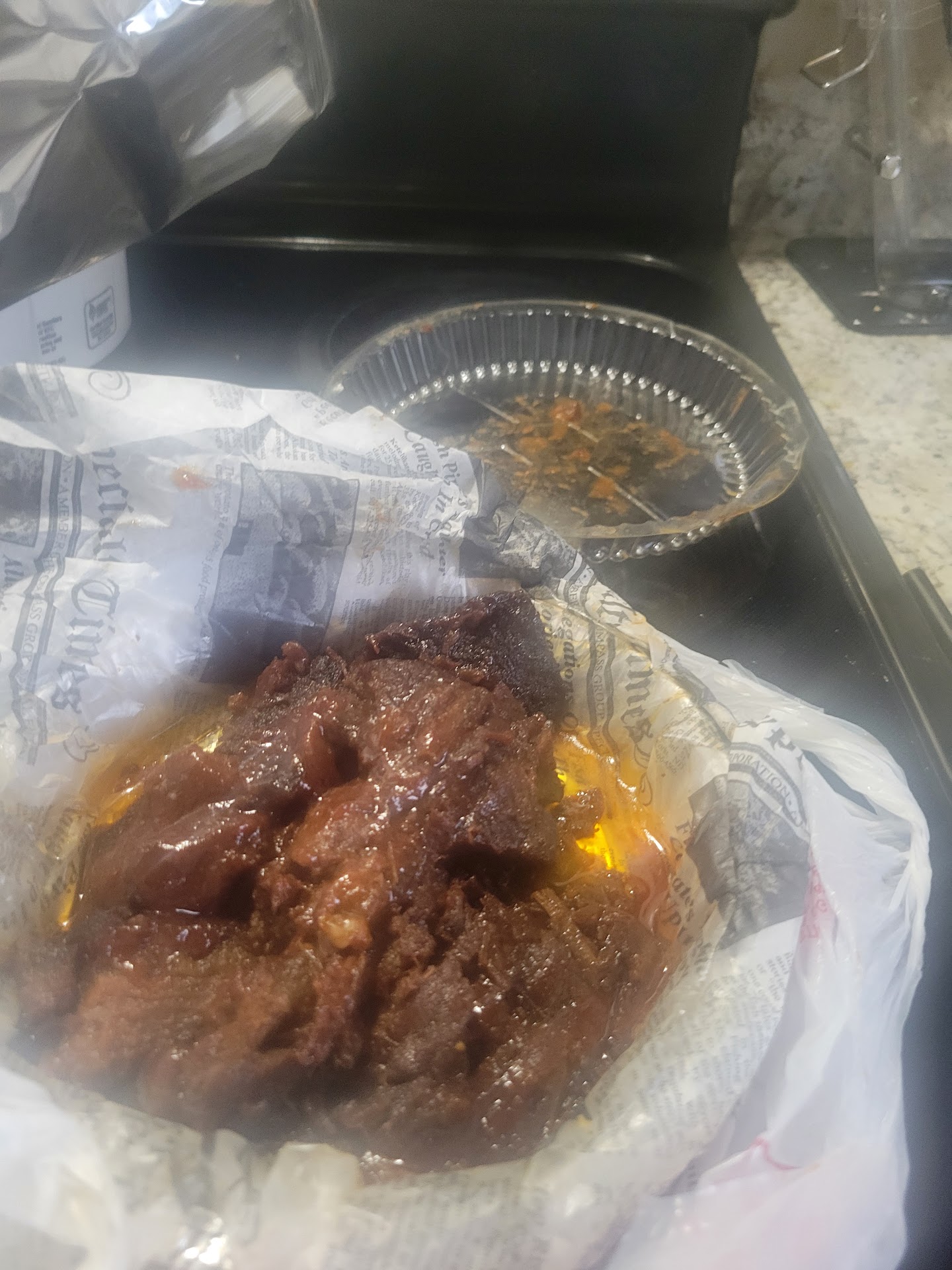 Update: Olivia came through, as she promised. This time, the ends we're much better. A bit too much sauce for my taste. The burnt ends were tasty but didn't seem smoked to me. Ijs. Good nonetheless! Will I visit again; 🤔 yeah I will. Next time I'll try a pulled pork sandwich. I hear it's a bit of alright. I am going to include my before and after photos. The 1st 4 are before. The...
