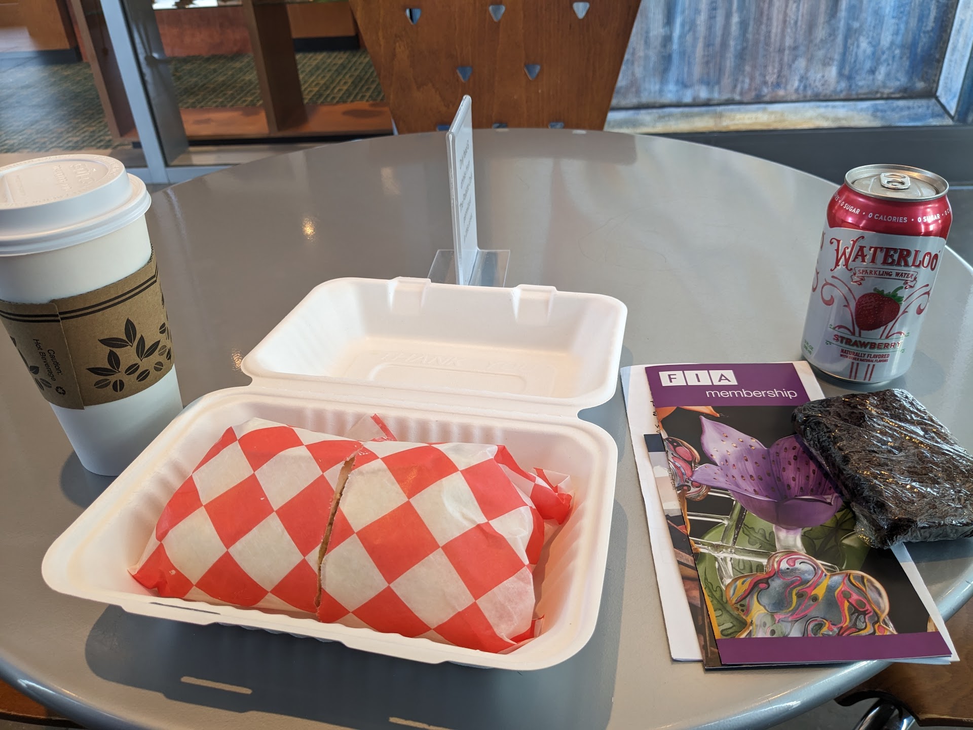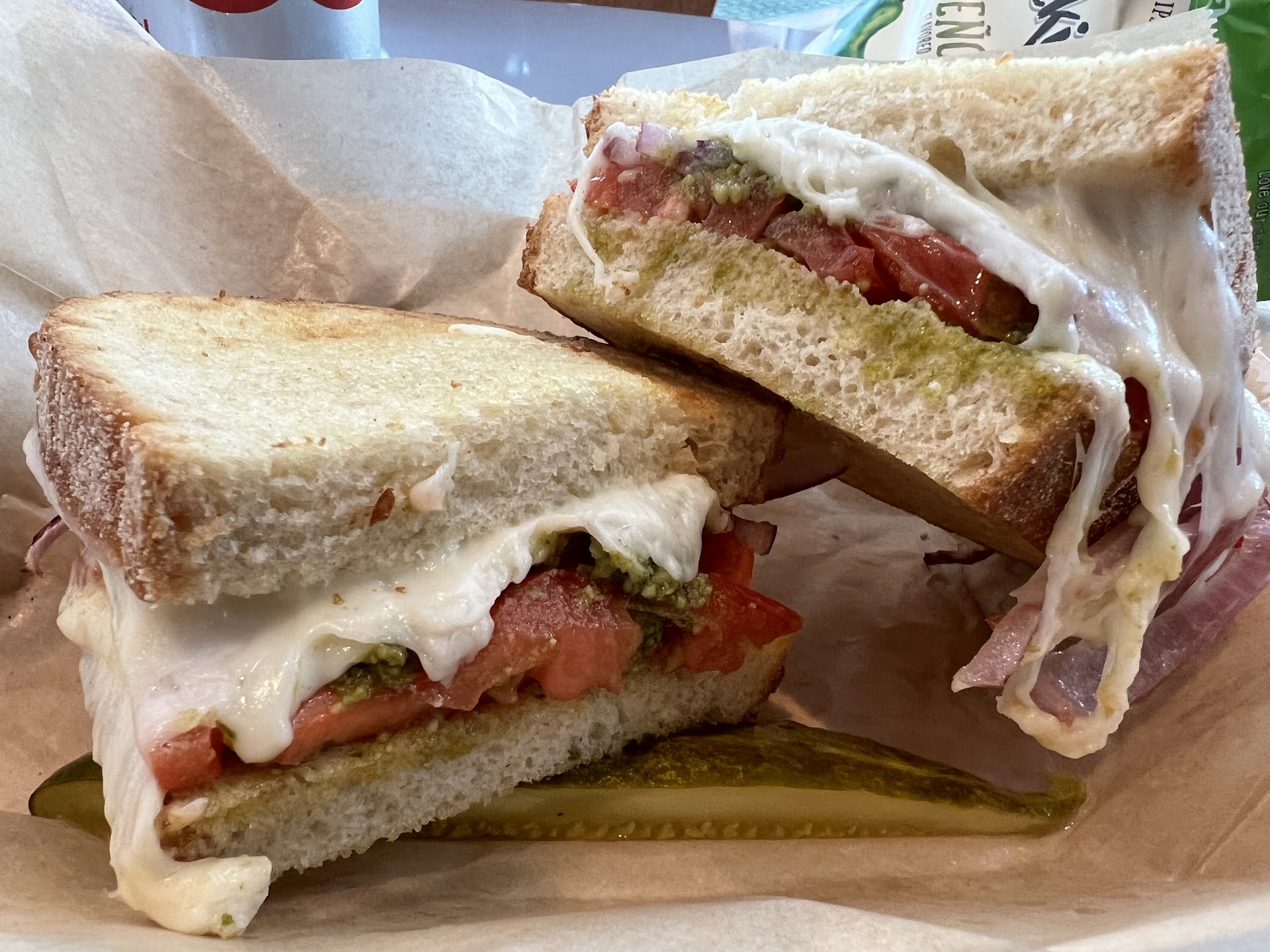 I’ve been visiting the Flint Institute of Arts museum for years and have been ordering the London Fog Lavender tea from The Palette Cafe. I love the flavour of this ☕️tea, and I’ve been meaning to get lunch here now for some time. Today, I talked my son into eating here for lunch and we had the Caprese sandwiches. The sandwich is made on homemade bread 🍞 from Detroit, with mozzarella cheese, tomatoes 🍅, onions 🧅 and pesto sauce. The sandwich 🥪 was slightly grilled and came with a pickle. The sandwich was substantial and tasty, the pickle was crisp, the tea was hot and soothing and the server was kind and professional. We sat outside the cafe and enjoyed the ambiance of being near the museum. The sandwiches are a little more expensive than a submarine shop, but they were great quality and tasted delicious! I really enjoyed my lunch and if you’re out and about and want to try a new place to eat or you want to go to a museum and stop in for a quick lunch or tea, try out...