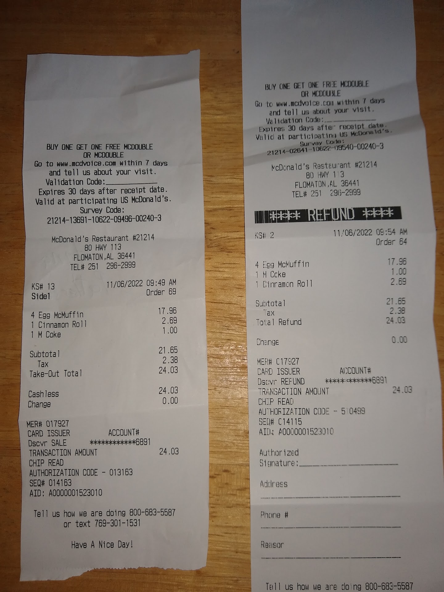 Read moreBEWARE: You might have a very long wait. We stopped here so I could drive home for my mom, but decided to use the bathroom and then get food. Our friend ordered for us (using the drive thru) while we got situated. I pulled around to meet her and found out she had not received her food yet. It had already been 5 minutes at this point. But okay, I get it. There were others in front of her. So we wait. We saw a dog and pet and played with him while we waited. We chatted a bit. But after 20 minutes, my friend was getting agitated. Finally, after 5-10 more minutes of waiting, we see a friendly, young man come out with our food. My friends burger was cold. Room temperature. Not exaggerating. Our fries, same way. My friend was NOT happy. She said "I'm not eating this!" The young man acted like he didn't know the temperature of the food. He seemed concerned and like he genuinely wanted to help. My friend went back in there and got another burger and fries and made sure it was HOT. My Mom said "I understand it taking so long, IF our food was hot. But it wasn't." I'm happy to say my chicken sandwich was hot and tasted delicious. It hit exactly what i was craving. But the fries and her burger were unacceptably cold. I've never got food this temperature from McDonald's before. Especially since we waited such a long time. I almost put a 2 star rating, but because i enjoyed my sandwich, i...