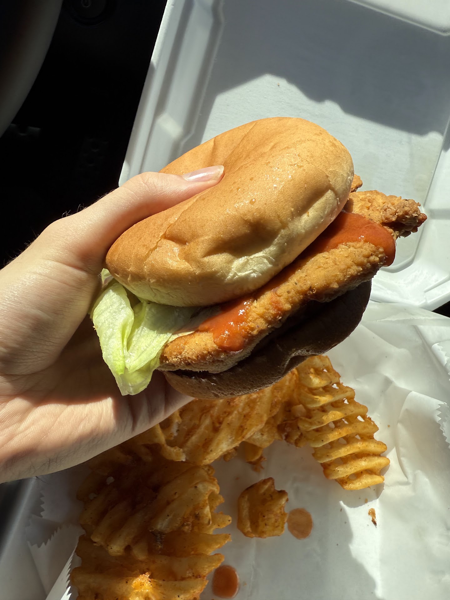 I'll give it 3 stars, only because the food was ok. We just ordered a shake, some fries, a hotdog basket and a chicken strip basket. All the food items were just fine.