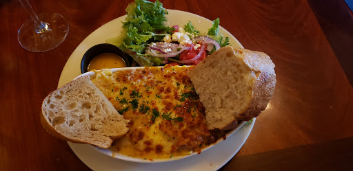 So my husband and I are all excited to get back to Florence and go to the 1285 Restobar that we had gone to 3 years earlier when we visited the area. We get there an hour earlier from our reservation so that we can have a cocktail at the bar. That all went terrific. We got seated and proceeded to order a personal size pizza to split for an appetizer. It was good. Then our meals arrived. At this point things went downhill. My hubby got the lamb shank osso bucco style and I ordered the crab filled ravioli with a lobster cream sauce. That's exactly how it reads on the menu. So imagine if you will, how you would picture this dish in your mind. I was thinking of a plate of ravioli with a beautiful creamy pink lobster sauce on it. Well, it arrived in a casserole dish that had been baked in the oven covered with thick cheese melted over the top. No place on the menu did it mention it would arrive that way. I took my fork to it and lifted the cheese up to find plain white raviolis with no notable sauce to be found anywhere! This was not at all what I was expecting and if I had known, I would not have ordered it. I tried a taste and it was very blah. Meanwhile my husband is sitting there with this very unpleasant look on his face and said to me; you won't believe this but mine tastes strange. I'm like really? He says to have a taste. He was right, it didn't taste anything close to osso bucco...it tasted sweet with some unusual flavor we couldn't put a finger on. Plus the meat was stringy and tough! Very offputting. So we tell the waitress who was went to the chef who in turn came out to speak to us with a huge attitude asking what was wrong. We explained exactly as I did here. You can see in his eyes he wanted to tell us off he was so mad. They made us feel so uncomfortable for not liking the food they presented. I'm sorry but that dinner was odd and awful. We left hungry. So my advise if you go, ask for more details on how the dish is constructed and served. As far as the osso bucco...not recommended. I added a picture of what was supposed to the crab ravioli with lobster cream sauce. Ummm...do you see raviolis or cream sauce?!?!?