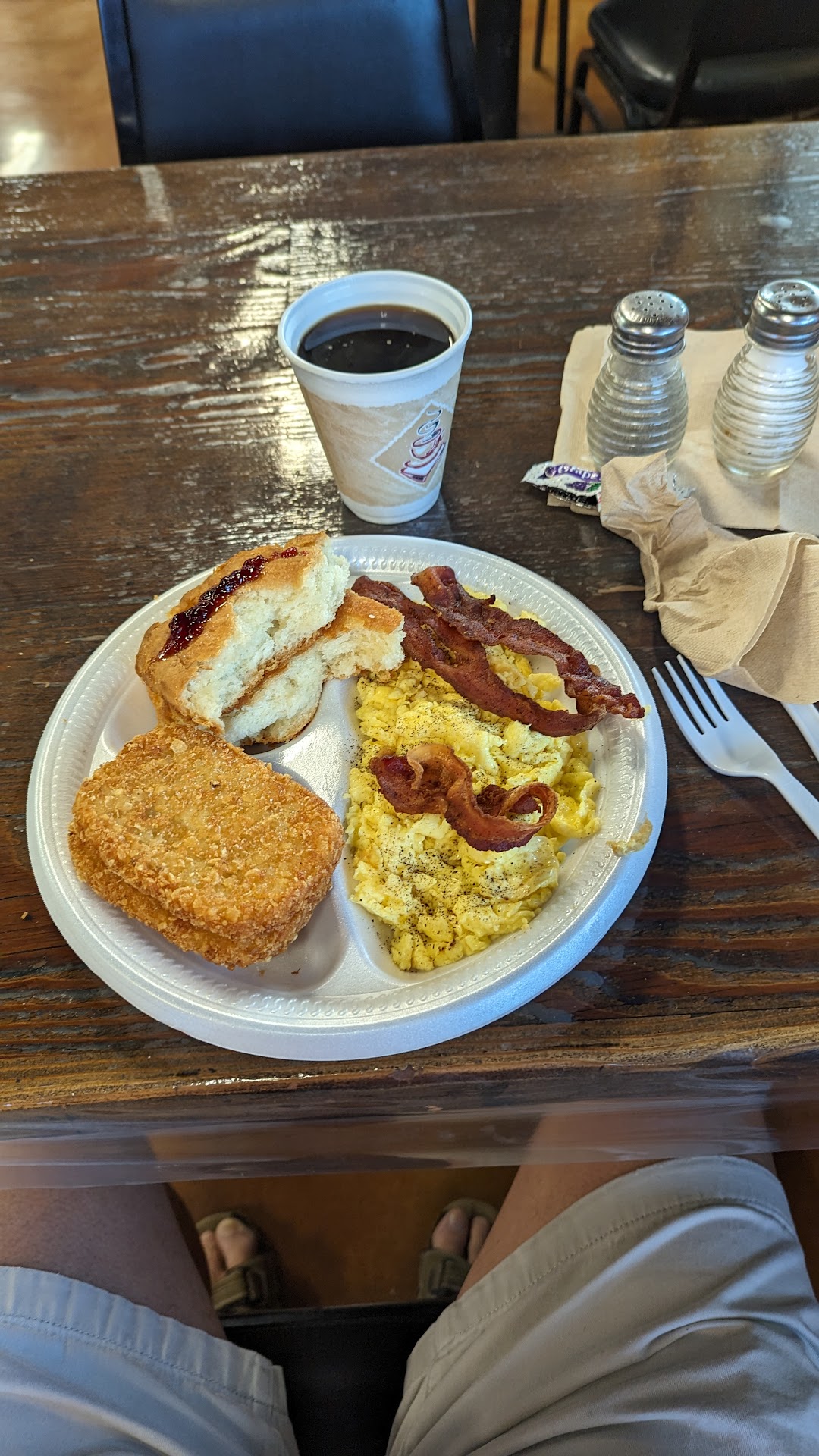 They have a dining section for the café and a separate section for the store. The convenience store stocks most things any convenience stores carry, and there are a variety of items on their menu in the café.