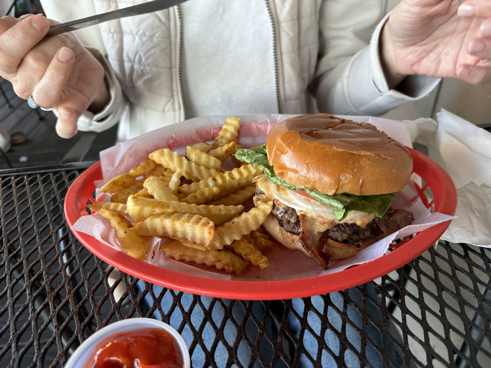Read moreWent with a group of co-workers for lunch. Was seated and our server was awesome, knew how to have fun and be professional. Took our orders, gave us refills in good time. Problem was we waited for our orders, over 45 minutes. Once we realized it was going to take too long to enjoy on site, we asked to get out orders togo. I ordered a chicken tender basket, buffaloed, with fries. I'll start off and say, the fries were on point! But the low rating goes to my tenders ( also another co-worker got plain tenders as well with same outcome) our tenders were so overcooked it was comical, almost like it was on purpose even though I know that's ridiculous. Maybe not a lunch break and not on company time, I would go back again and give them a chance. I enjoyed the atmosphere and our server. Mistakes happen but this was not the best...