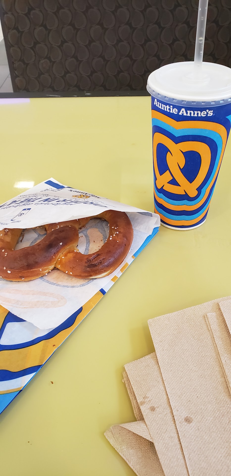 Auntie Anne’s has amazing pretzels! The best in my opinion. The service is usually spot on. However, today as the employees worked hard through the busy hours the manager acted out of control as if he couldn’t handle the job. He was yelling at customers to give him their orders! Several folks felt uncomfortable with his attitude as well as the fact he wouldn’t change his gloves. When it came time for my order I was ready- and yelled it to him, he didn’t hear it and needed it repeated. From there, he wanted me to pay right at that moment, by yelling the total to me multiple times. There was a family ahead of me still paying the cashier, therefore I couldn’t do anything. Needless to say, the manager made his employees and every customer feel uncomfortable. Every other employee stayed calm and collected through the chaos, and I applaud them! Great work to all the others! Lastly, as he was talking to the cashier he coughs on the food! I WILL NOT RETURN IF...