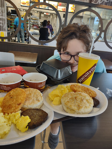 Read moreHonestly I did not really like the food. I got a #12, which was a grilled chicken English muffin with egg and cheese. The cheese was the fake American cheese you can get in the packs at the store - if you're a cheese lover like me that is always a major letdown. The grilled chicken was pretty bad. The English muffin tasted better after I took off the chicken. It was dry and unseasoned - very plain. My friend that went with me got a #5, a Cajun biscuit with honey glaze. It was spicy, but not too spicy, and did not have too much honey glaze. But if you wanted a good Cajun biscuit I wouldn't go here for one, basically it's mid. However, I will say their biscuits themselves are pretty good - as they should be considering they're called biscuitville. We also got a cinnamon swirl to try it, it was not very good; I took one bite and couldn't eat any more of it. The flavor for it is hard to describe, but it was off from what one normally tasted like. Even the cinnamon swirls you buy in the cans at the store are better. Final thought: I probably wouldn't come back here unless there were no other places around, and considering their location, there are better...