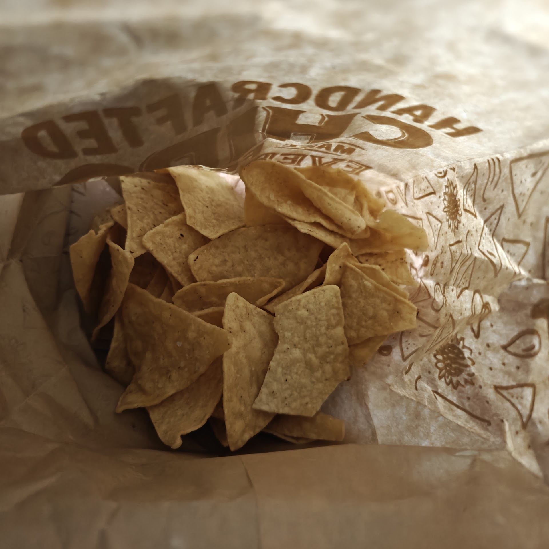 I got red and green salsa on the side but the red sauce was horrible so I threw it out. I hate to waste food but even my 4 year olds wouldn't eat the chips. I emailed Chipotle but no response yet. Pretty bummed this is what I got the first time I visited...