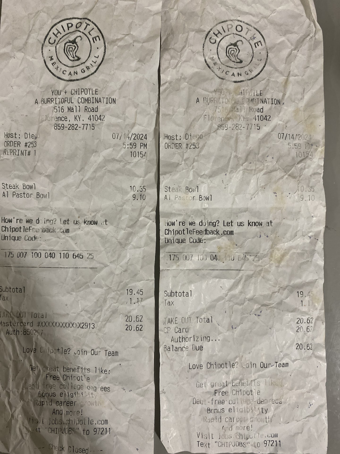 Read moreMy fiancé and I went here for dinner one night, we both ordered our usual meals. His was good but mine I couldn’t eat because it was too spicy. I LOVE spicy food but even my fiancé could tell I wasn’t enjoying my food because of how hot it was. My fiancé took the food to the manager at the front and asked if it could be remade without the salsa and he said “sorry, we can’t do anything about it besides give you more sour cream.” I went with it, the sour cream did nothing but make my entire meal taste like spicy sour cream. Unhappy, I went back up to the counter and asked for a refund on my food because I couldn’t enjoy it and they wouldn’t remake it but AGAIN, the manager said “sorry, we’re not able to do that, you’ve already eaten some of it.” WHAT?!?! The employee standing next to him started giving me attitude, saying they aren’t TRAINED to ask people how much of something they want, they just give it to them. I’m sorry but that’s poor management, poor training, and it was an overall bad experience and I will NEVER eat at this particular Chipotle again....