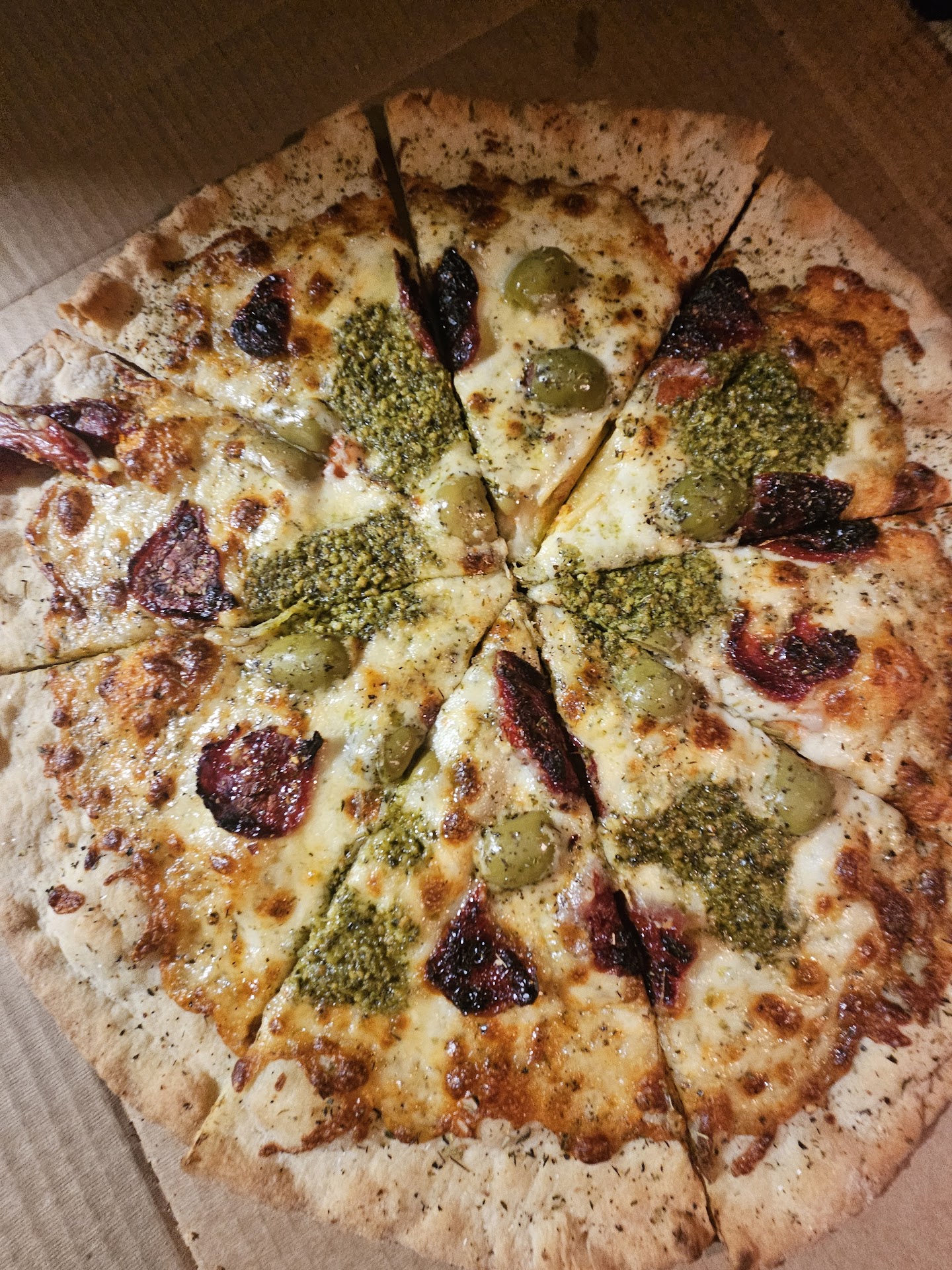 For lunch we ordered the B&C pizza. . It consisted of beef, mushrooms, onions, bell peppers, tomatoes, cheese and balsamic glaze. Very good!