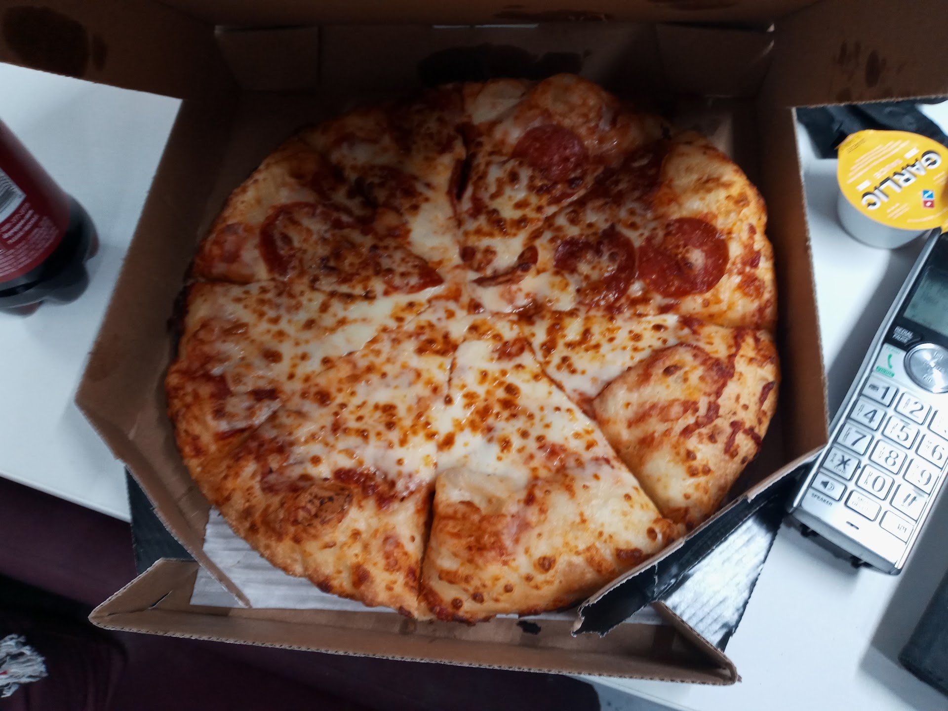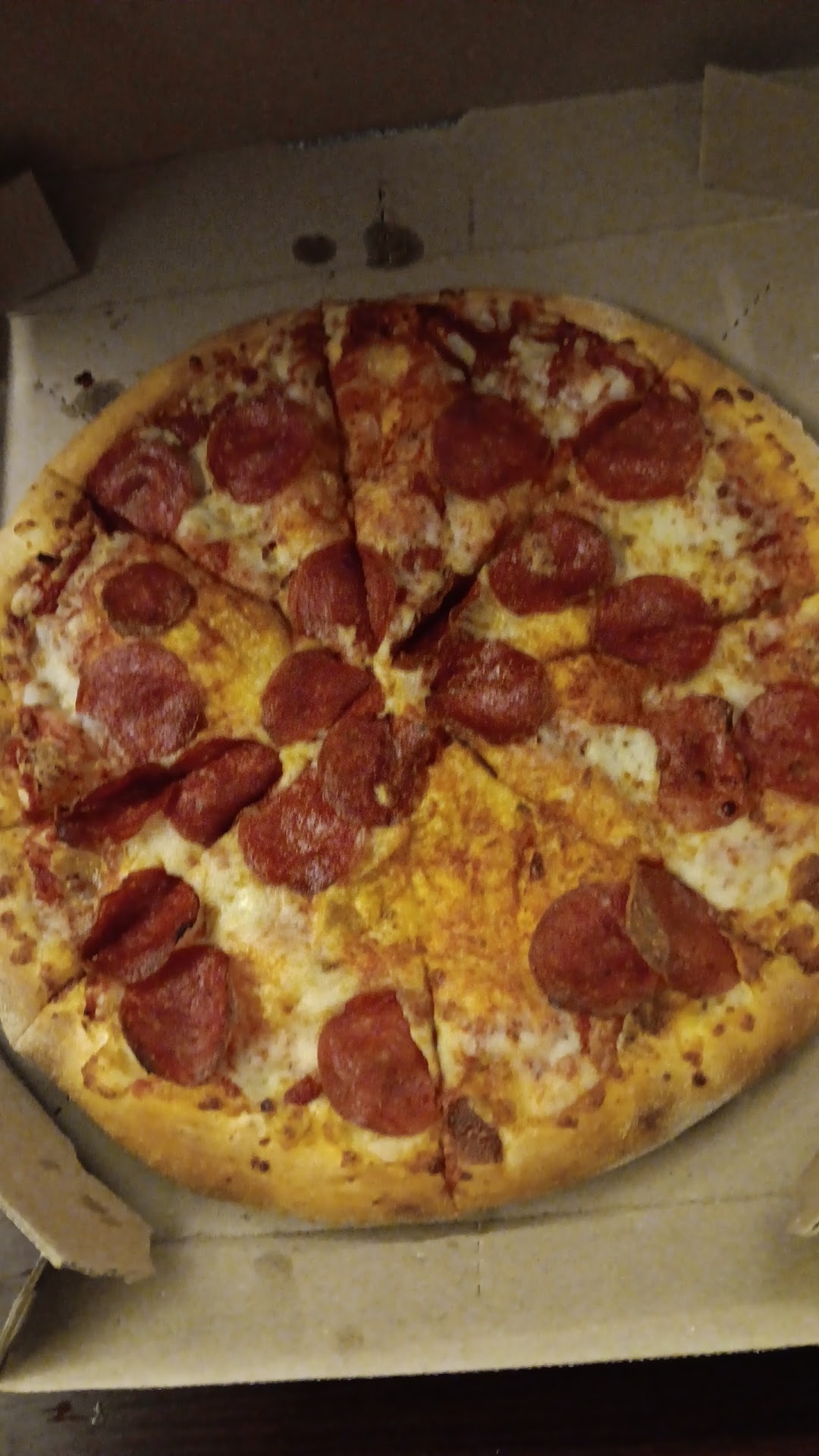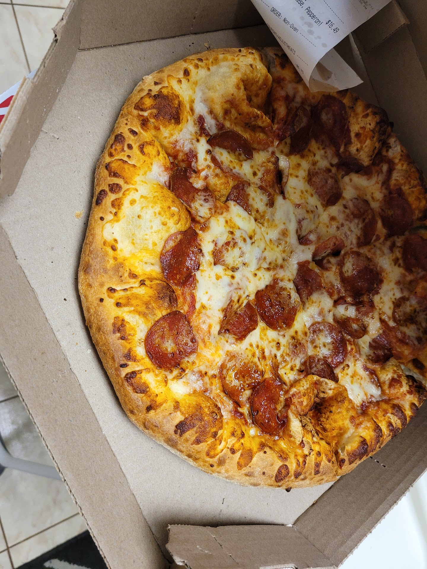 Read moreI ordered dominos on a Monday afternoon (around 1pm) for just a medium pepperoni pizza and everything was good until I was using the tracker and it was stuck in "quality check" for over an hour. I thought at first they were waiting on more orders to complete for them to send a driver out (which if that was the case, I was completely patient with) BUT..... when I called to check on the status of my order 2 HOURS past "quality check" [ 3.5 hours in total from order sent ] they told me that they have not even started my order yet. At that point, I told them to cancel the order and issue a refund. The lady on the phone was so annoyed with me and kept saying "are you seriously canceling this."