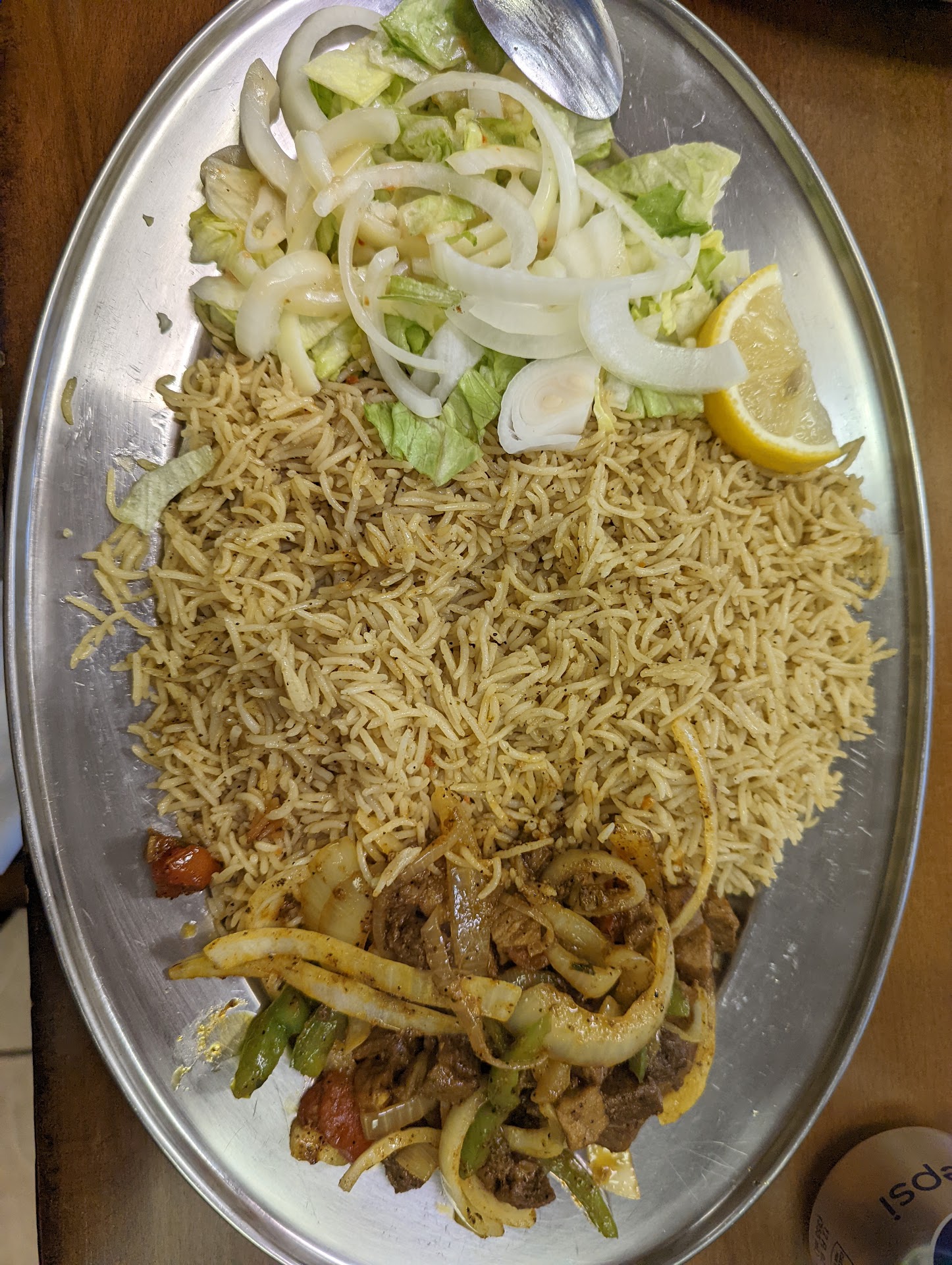 I had the beef suqar my daughter had chicken suqar and my wife had lamb... We all had rice, salad, sambusa, and the tea... All of it was excellent although I preferred the suqar which is like a stew...but the lamb has the bones in it which is more difficult to eat around (but common with lamb) still good but on your first trip I'd pick a suqar. The sambusa... Man good stuff... Got some to go hope to pop them in my toaster oven with lunch tomorrow. The rice is very flavorful and the salad I'm not sure what dressing was on it but also served with a slice of lemon and it was simple yet great. The tea... I don't like tea but thought out 2 so I gave mine to my daughter who is older than she looks and they brought me another and insisted it was good so I tried it... It's not good it's great... I'd drink this over hot chocolate... Didn't expect to like it... But I love it.