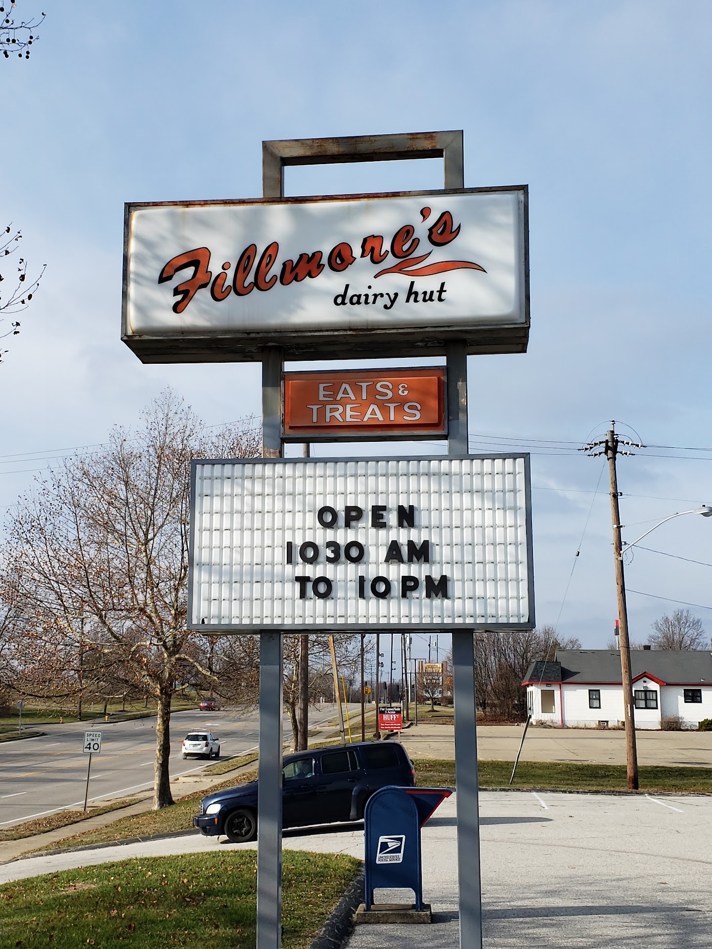 Read moreMy friends from out of town and I went here after our dinner in Florence for dessert. We googled ice cream near us, and this jewel popped up! A very cute old-townie little diner. Prices were fantastic, and serving sizes were very generous for ice cream. The diner may appear to be outdated some, but the quality of service and dessert were great. They had other food items like most little dessert stops. (Burgers, fries, chicken tenders, appetizers and soda etc.) A really good menu with a variety of options. We did not sample any of the food, so I can't speak on that. Fillmore's Dairy Hut had a very spacious parking lot and many places to sit both indoors and outdoors. We were surprised to find that their restrooms were outside around the back of the building. One single toilet bathroom for each men and women.