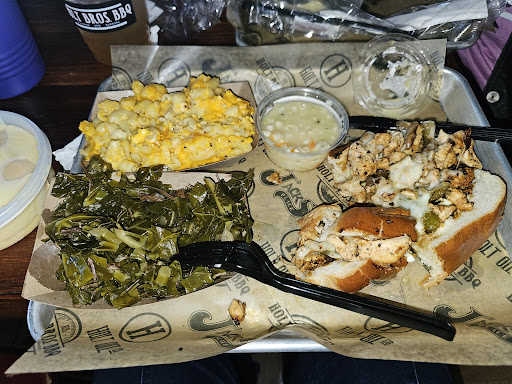 I'm giving this two stars because the sides are good or it would be a one star. Every sauce might as well be the same sauce, basically it's vinegar with more vinegar with more vinegar and a touch of some other flavors with some more vinegar. I guess the reason the sauces are so thinned down with vinegar is so that you don't realize how dry and bland the brisket and chicken is. Besides dry, the brisket is mushy and tastes like day old leftover pot roast that would be better with gravy. The chicken being cooked with whatever vinegar sauce they used was still dry and mushy as well. I do believe they should invest in a smoker so that they can offer some real BBQ and not just sell vinegar sauce.