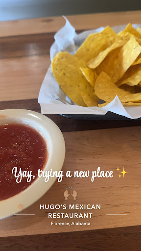 Read moreWe traveled in to Florence from Mississippi to visit family. We used to live in Florence, so we were familiar with all of the Mexican restaurants, but had recently heard about Hugo opening a location. All we heard was positive reviews, so we decided to give it a chance. We were extremely pleased with our decision. The atmosphere was great and the staff were friendly. The menu had a lot of options including some we hadn't see in Florence before. The food came out hot and tasted fresh. All four of us loved our meal and are thinking about our next visit and...