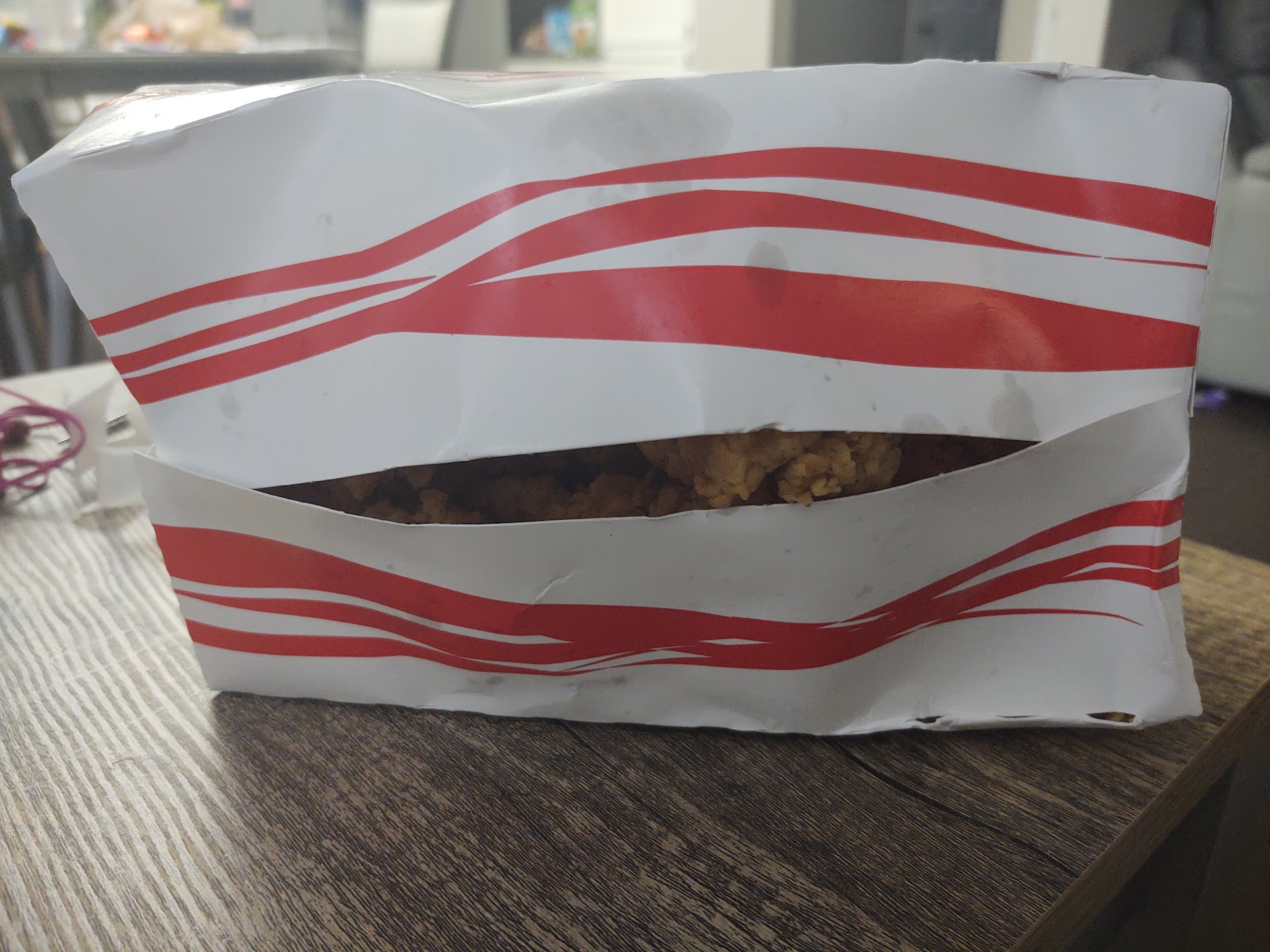 We decide to go back through the line to get some strips for our children. We didn't ask for a refund or exchange we PAID for more chicken without question because we messed up. When we get back to the front window this lady THROWS and I mean throws our food at us and slams the window in our faces. I added a picture of the chicken after she threw it at us for reference.