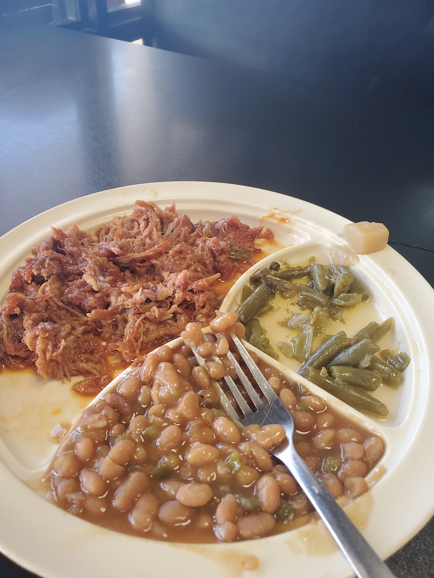 Read moreThis place is terrible. Got the pulled pork sandwich.... They don't make their own pulled pork. I took a couple bites and asked the waitress, this isn't made here is it. Oh yes sir it... Mam this taste like curleys or any other BBQ from a plastic container at a grocery store. Silence, she just said I'm sorry sir you don't like it. So I ate a couple more nibbles and left that alone. The green beans are green beans, can't really mess that up. I tried the baked beans, just tasted like brown sugar nothing good going on there either.