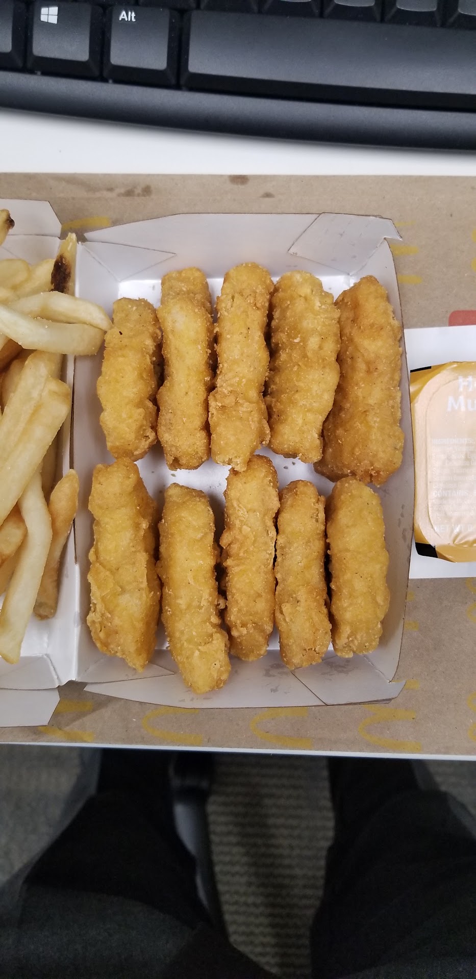 I pull up and there's no cars in front of me, ordering, paying, or getting food at the window. I immediately get "please hold". I wait about 2-3 minutes for them to finally take my order. I pull up to the 2nd window as directed after my order was taken... the cashiers back was towards me leaning on the window. When he does turn around to collect my payment, doesn't confirm my total or even say a word! Swipes my card, accordian folds up my receipt and hands it back to me with my car...still saying nothing, not even with a smile... gives me my frappe. I'm waiting at the window for another 4-5 mins. Thinking I'm gonna get fresh food. Meanwhile, the cashier is just standing around... looking board. Next thing I know he's handing me my happy meal...then I'm waiting another 2 mins and he pops the window open and says something really fast, all I understood was did you get your frappe? I said yeah, he turned back around and said something to the other employee. Hands me my bag. I'm like finally! I just got done working, and I'm freaking tired. I start to drive away and I grab some fries... just barely warm. Grabbed a nugget, taste like it was sitting out to long. Open my cheeseburger, hoping that's what was fresh and why I was waiting so long. Nope! 3 dried out patties, with cheese that couldn't even melt... I'm tired I don't feel like going back and complaining and waiting on actual fresh food. I get all the way home and realize they didn't give my my daughter's chocolate milk to go with her happy meal. It takes a lot for me to leave a review like this.