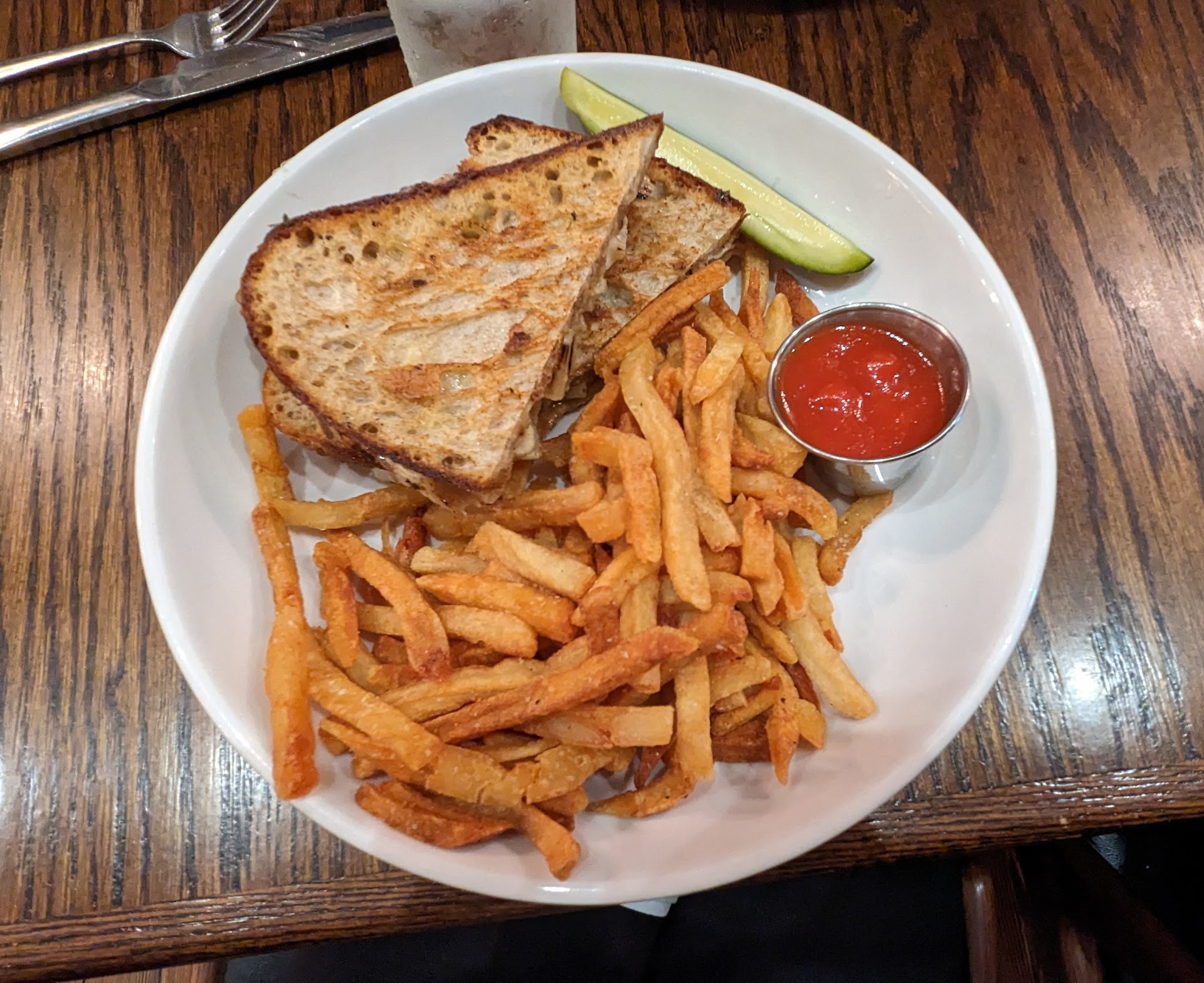 I ordered the asparagus grilled cheese and was impressed with the structural integrity of the bread as well as the fries being perfectly cooked, neither soggy or burnt. The ketchup is homemade and very interesting, slightly sweet and not "goopy" like regular ketchup. My one qualm is that the grilled cheese was quite heavy, and not as balanced as I would have hoped with the addition of the veggies. However, because it was so heavy and filling I had to get a box for half and am basically getting two full meals for the price of one! If you are looking for a rich grilled cheese with "hidden" veggies, you would like this.