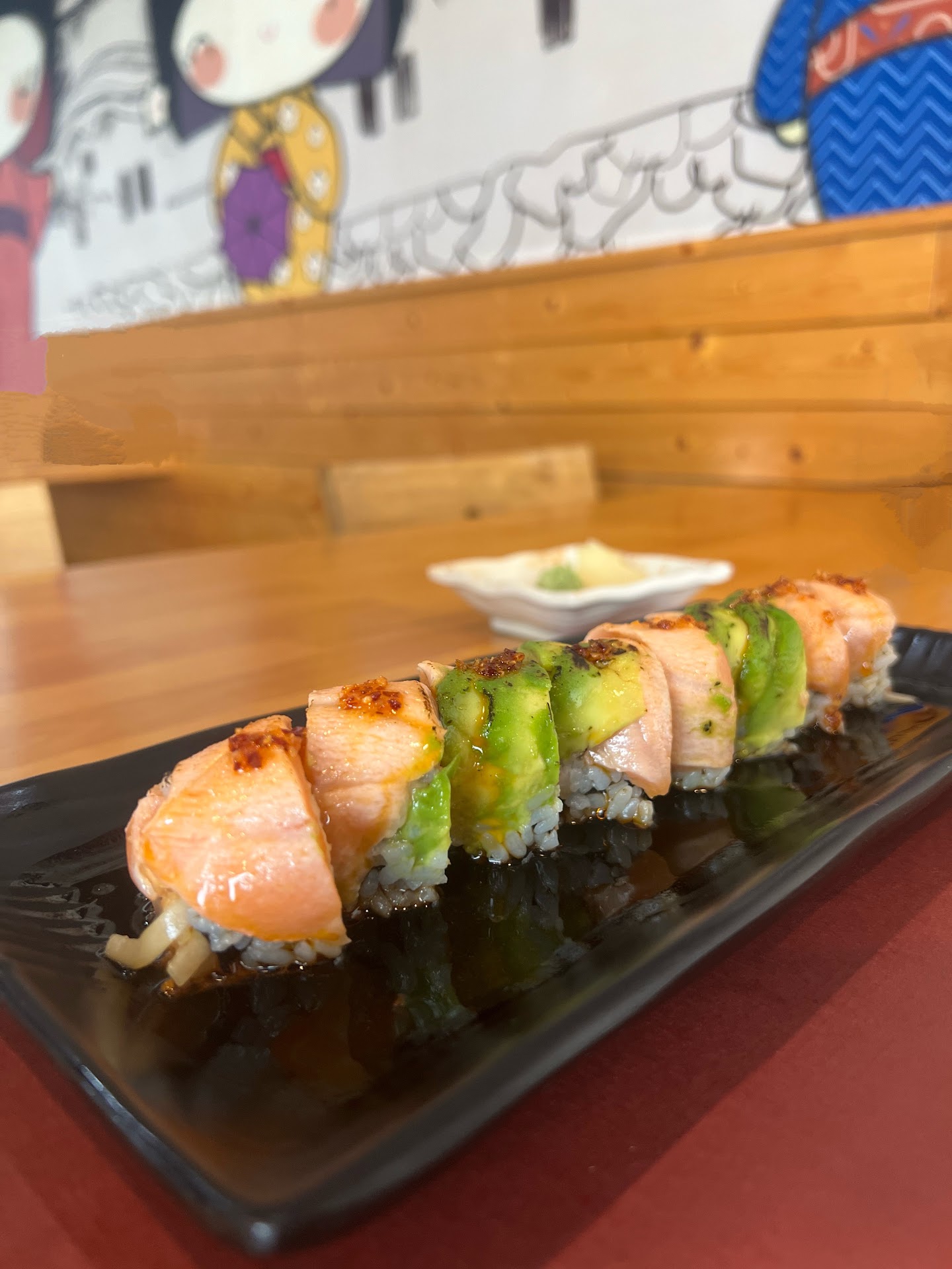 My great niece and nephew (7 and 11 years old) LOVE sushi. They can’t wait to come visit again because of Oishi!! She didn’t want tuna in her roll so he added additional salmon and she LOVED it!!