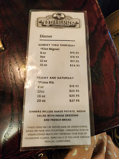 Read moreLast night my family went to Quincy's to celebrate my granddaughter's birthday. We arrived at 6:05PM and was seated immediately. Our waitress took our 5 orders and a take out order and left. We waited almost 45 minutes and noticed that people who arrived after us were served in a timely manner, but we were not served our salads yet. We did not see our waitress so we spoke to another waitress who was serving her customers in a timely manner and requested she get our waitress. Our waitress then appeared with the salads and we didn't see her again. We waited another 45 minutes and noticed that during our wait time other customers who came in much later than us were served both their salad and main course and were leaving, so we finally spoke to someone behind the bar to see what happened to our meal. She said our order was never turned in, but that it would be in line to be prepared. Another 15 minutes passed and our waitress appeared, without an apology or any comment and hurriedly served us our meals. She mixed two of our meals so the people got the wrong servings and the filets of two of the 6oz. servings were tough and over cooked and the 9oz. filet was full of fat. The waitress appeared again briefly and asked about our drinks for the first time and was very hurried and crisp. We finally finished leaving portions of the uneaten filets and requested our take out order. She brought us the wrong take out order and another waitress rushed over and took the order saying our waitress brought out the wrong order. We were upset with not only the time spent while others were served and left, but with the quality of food. When the waitress brought the checks, there were tips assessed to the check. We protested that the service was terrible, the quality of the food was poor at best and that we didn't want to leave the waitress a tip for food service. We're not sure who all we spoke to, but they refused to remove the tip told us we had to pay it. Rather than put up a fuss, we paid the bills and left. Oh, by the way, I noticed that the cook in the kitchen had a cap on, but had shoulder long hair with no hairnet. Not good sanitary conditions in my view. I will not return to the establishment and will not recommended to anyone else. The arrogance of the staff and their attitude that "the customer must accept their insolence" is...