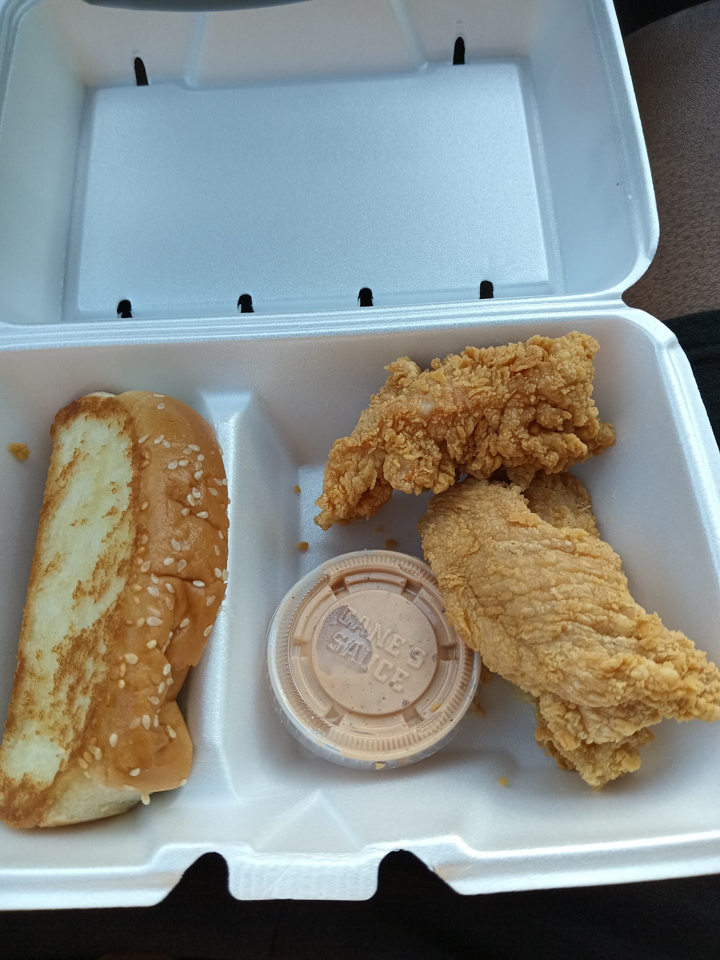 Read moreCanes as a whole is pretty good, but this location I plan to never visit again. Today, I had to sit in the drive through line for 45 minutes. The line was so backed up that it was out in the street causing traffic. It was so backed up that they have had to take a precautionary measure and entirely close off one of the entrances because that way would have to turn into the line that is always backed up beyond where it would merge. This is not an uncommon occurrence from what I have seen driving by. Basically every night of the week and during lunch, it seems to be that backed up. The line isn't backed up because of some crazy demand; it is due to how insanely slow they are to serve some chicken strips and fries. The "temporary" reduced hours also seem to be not so temporary since they have been in place for several months. The inside is still closed just making the drive through situation even worse. Onto the actual food at this location. It is simply okay. The bread was soggy. The fries were soggy. The breading was sliding off the chicken. Some pieces were tender while others were more chewy. Bottom line, long waits for substandard food. You would likely be better off just go to Guthrie's. You could probably drive the extra distance, get the food, pull into a parking spot in canes and finish eating your food before you would have gotten your food waiting in the line. I would like to reiterate that this does not seem to be an entire chain issue. I have been to a few in the area, and they are prompt and consistent...