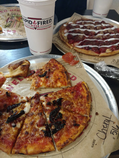 This place has revolutionized pizza. I was SO skeptical about what is basically a fast food pizza joint that I passed multiple opportunities to go here. Boy was I wrong! It functions just like a Chipotle or similar burrito bar where you go in, get in line and choose your toppings being applied as you move down the line. Best part? Add all the toppings you want, same price! Right off the bat I was very pleased to see a hand sanitizer dispenser right there in line for you to use, I personally really appreciate this. Next thing noticed is the topping bar... SO MANY CHOICES! I'm talkin Different sauces, different sausage types, cheese types... diced garlic, anchovies (BLEK!), veggies, seasoning additions etc. etc. Maybe you don't want pizza though? You don't even have to choose pizza sauce! They have BBQ, alfredo and more to choose from, they thought of it all! So you choose all your additions as you move along and then your pizza goes in the conveyor oven. There's even a small craft beer selection at the register. You pay, get your drink cup and in 2 minutes your pizza is handed to you fresh and hot out of the oven. This is where I thought I'd be let down but man did it look good. Then I discover the sauce bar by the drink station, they offer like 12+ sauces you can pick from to add on or dip with! So far I was loving this, then to top it off they have one of those high tech drink machines, Mug root beer with cherry or vanilla added? CHA CHING! So now the taste test... WOW! This fast food pizza is better than 90% of the pizza restaurants around town, I know because we've tried them all. I really expected bland flavor from cheap ingredients and I got the total opposite, it was delicious, all of it. I ate the whole thing it was so good, granted this is like a 10" personal type pizza. I chose the thin crust but they also have pan available. Cannot recommend Rapid Fired Pizza enough, it was awesome start to finish. Will be...