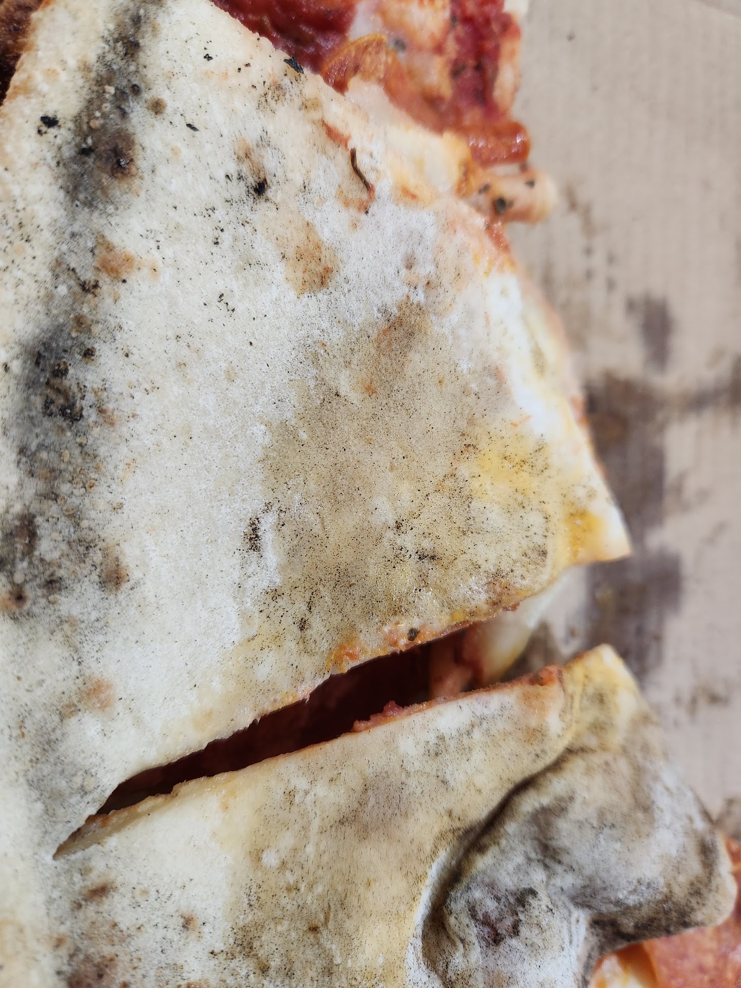 Several sections of the crust were burned to a crisp and both pizzas were drowned in some sort of viscous grease (or maybe really low quality olive oil) on the surface.