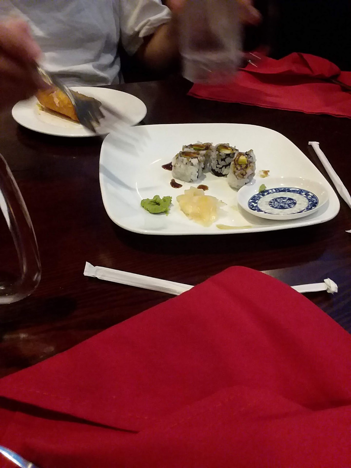 Read moreLet me start off by saying how much we used to love coming here...not sure if there has been a change in management but the service has definitely gone down hill. Visited with my husband and 10 month old baby today, we walked in and received no greeting from the host. A second lady walked up to the hostess stand and and asked how many we had and then stood there for about two minutes and asked the original host where we should be seated. She then took the menus and started walking, unsure we followed behind her. She then took us to a booth set down the menus and walked away, I then followed her and asked for a high chair, I would have thought she would have offered one, she obviously doesn’t have kids or just didn’t care. Considering it was just us and two other tables in the whole restaurant I figured the service would be very quick....WRONG. I waitress took about 5 minutes to get to our table. We ordered our drinks and some egg rolls. She came back to our table very quickly with egg rolls. We ate all of our egg rolls, looked at the menu, and decided what we wanted which took about 15 minutes. Our waitress came back to our table and we ordered three sushi rolls and stir fry. Once she took our order I asked if she could please bring the drinks because we still had not gotten them. She left the table and brought them back within about a minute. We waited for our food for about twenty minutes, she then brought us our stir fry. I was upset because we ordered our sushi first, and didn’t understand why our meal came out 5 minutes before our appetizer. We ate our sushi and by the time we had finished our stir fry was cold, so we didn’t even eat it. We asked our waitress for drink refills and that also took out 10 minutes. When we got the check I gathered up my child, cleaned his mess and stacked the dishes for our waitress while waiting for her to bring the check back after we paid. I grew impatient and took my son out to the car walking by the hostess stand with the two young ladies standing there, no good bye have or good night. I wouldn’t say the service sucked because I’ve had worst but I know I won’t be back. I wait tables so I know how service should be and that was not...