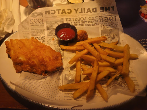 Read moreI am going with a 2 because not our entire meal was bad. They were not crowded, but it took forever for our meals to come, and when they did, they were wrong. I ordered the Friday special (Fish & Chips, pictured) and they have some nerve charging 19.00 for that dish (it's 15.00 on Friday) They need to take some tips from Cracker Barrel regarding fish & chips) One overcooked greasy piece of fish that I had to use napkins to soak up the oil, 2 miniature hush puppies & about a cup of fries. (They forgot my Cole slaw) My wife and daughter both ordered triple shrimp dishes. (They forgot my daughter's french fries.) My wife eats like a bird and takes her food home, and she realized when she was done that they had omitted one of the shrimps choices (scampi). Now for the beverage. Against my better judgement, I ordered a "Lobsterita," which I didn't realize how large it was and was 14.00. The WORST margarita I have ever had. Tasted like rubbing alcohol, very little lime taste, not sweet at all and no salt, but it did have the Lobster Mardi Gras beads, which my daughter loved and confiscated. Now I don't remember her saying this, but my daughter said the waitress claimed that she had made it when she brought it to the table. When I finally had enough , I addressed all my complaints with the waitress. She stated that other people had filled her orders for her, and that was the reason they were incorrect. As far as i'm concerned, she is the one relying on a good tip and should make sure our orders are complete. When I said something about the Margarita, she stated that her manager had made it, and I told her that the manager should not make any more margaritas or learn how to make one properly. I need to add at one point when the waitress came to the table for a beverage refill (which she was faithful with) she must have just taken a smoke break because she stunk like and ashtray, which turns my stomach when I am eating. After voicing my complaint, she offered to remove my food from the bill, but I declined as I had eaten it and I was not looking for a free meal. We finally agreed to remove the margarita because I had not taken but three sips out of that and couldn't drink it if I forced myself too. My wife got her scampi to go. The waitress earned an 18% tip, not our normal 20-25%.(My wife is a former waitress, and she tips well) It's no wonder that Red Lobster has closed so many stores if this is how patrons...