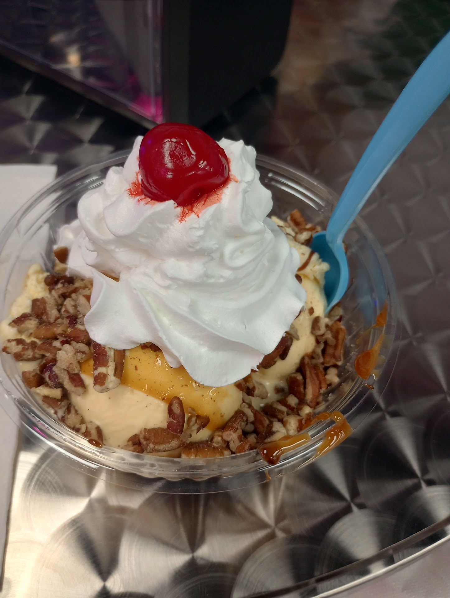 Read moreThe place is just great! The ice cream is good. They have blue bell and blue bunny ice cream. From the time you walk in the place, it makes you feel like an excited kid all over again going for ice cream!!🤗🤗 the two young ladies were very friendly, nice and pleasant! They allowed us to taste before we chose our flavors. Nice spot to chill and eat good ice cream!! Price was...