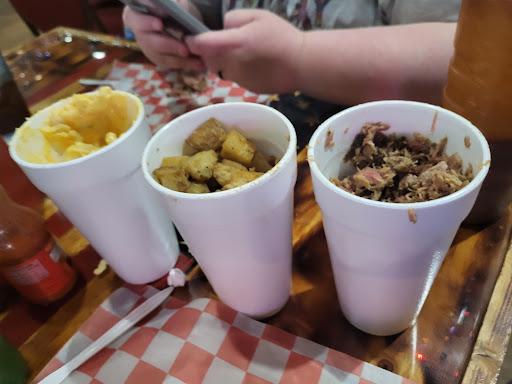 We ordered a Pork Trifecta, which is 1lb of pork and two sides. It was served in styrofoam drink cups.