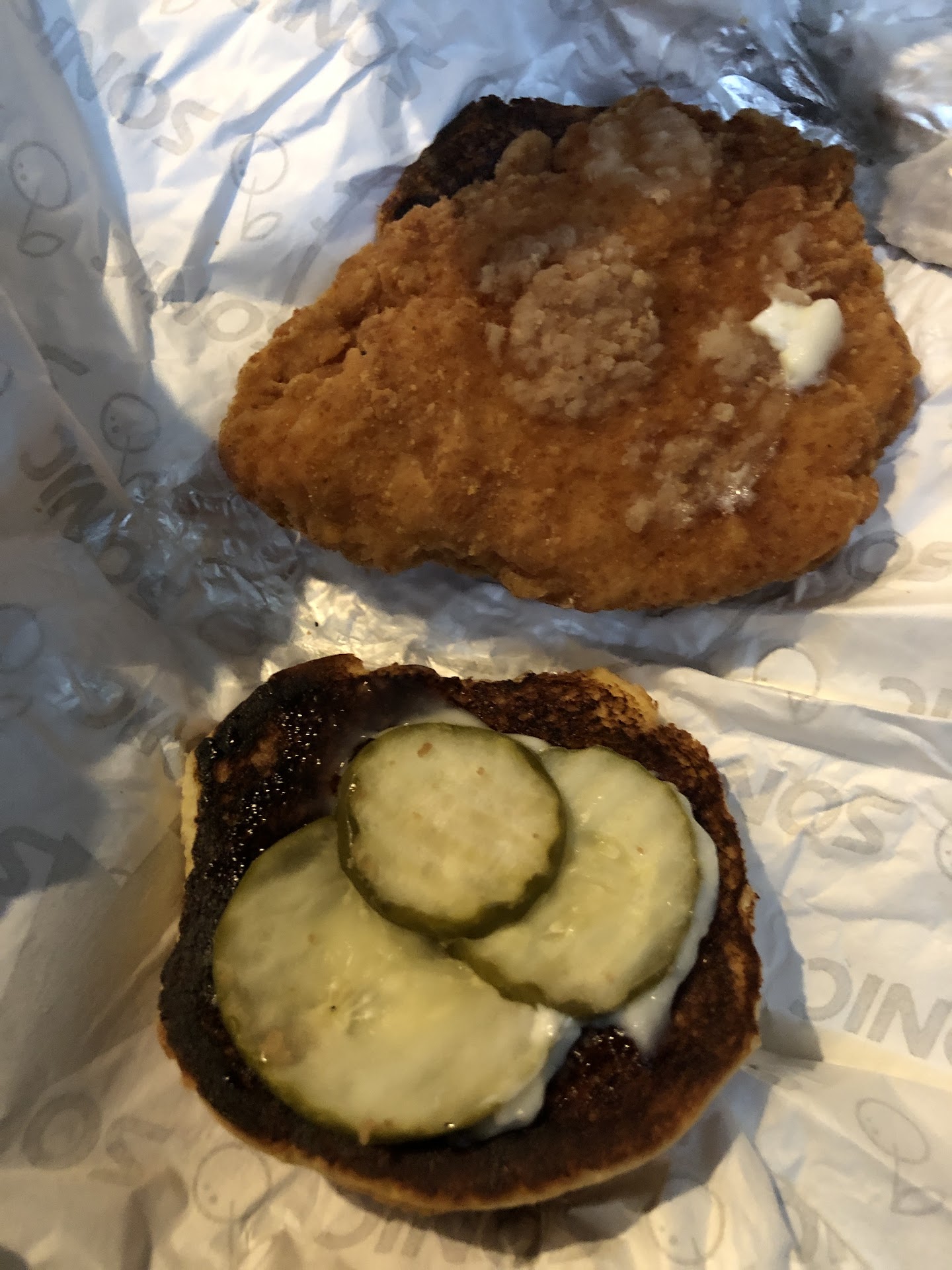 Read moreNever been to this sonic location before, was looking for a new place to go too where we could take advantage of the weather today and realized Sonic was the purrfect place to be. I ordered tots and a pretzel and my friend ordered a combo. Did you know 44oz slushies were a thing? đ€Ł I definitely wasn't taking how many ounces that truly is into consideration but it was great. I wasn't sure if they would mix two together, but they did without a second thought. Food was hot, I think the machine hated me for the card reader though so I felt bad to ask the waitress bringing the food if she could run my card inside. I was hanging out with a friend I hadn't seen in a while and next thing we new, we sat there from like 1 to 4... Waitress came to ask if we needed anything and I thought it was odd, but we definitely lost track of time. Thankfully I don't think we messed up business for them at least and hogged a car port... At least I hope not! đ« I haven't been to any sonic in a few years so definitely will be back, probably need a smaller size slushy, 44oz aren't no...