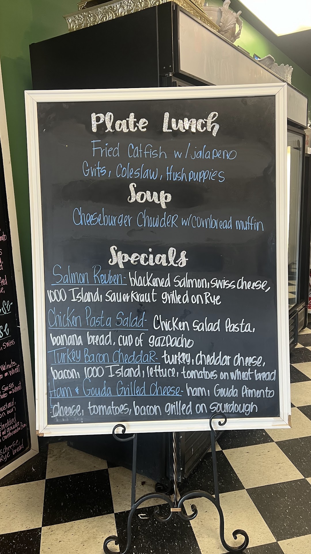 They serve a variety of gourmet salads, specialty sandwiches, soups, homemade desserts, plate lunches, and so much more! They even have to go dinners available!