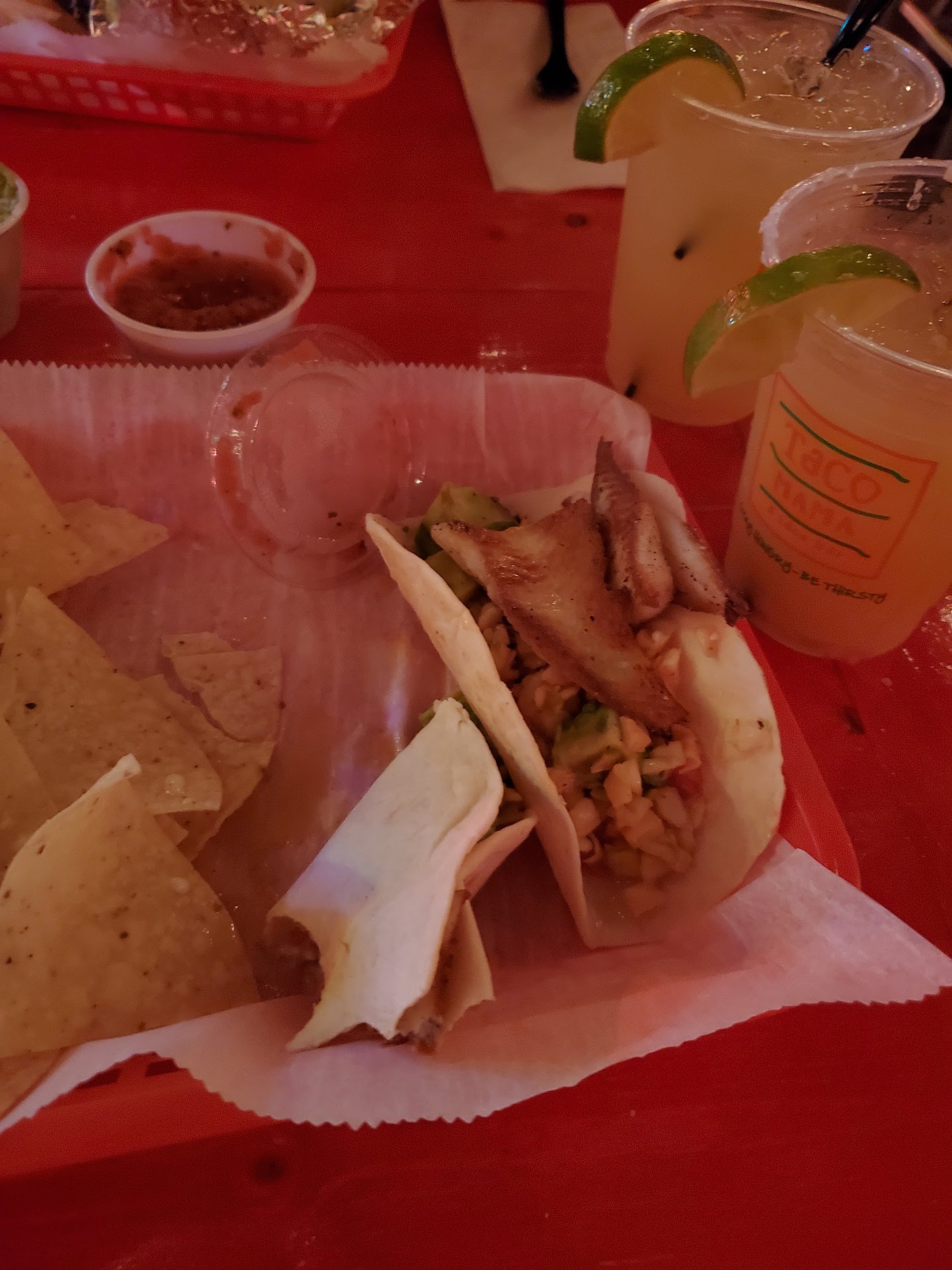 Let me just start by saying that this isn't Mexican food, so don't expect it. Now that we've got that out of the way, what you can expect is some really high quality house made ingredients, tasty meats, and a choice of toppings that will make your head spin. The flounder and barbacoa are what I had, and they were really good! The fact that you get a side (and it can be queso dip) is really awesome. I can't wait to try some of the other items. The margaritas (watermelon) were on point. Kristina knows how to do it right! The line died fast and the service was prompt. Check this place out if you love tacos, besides the ones that are...