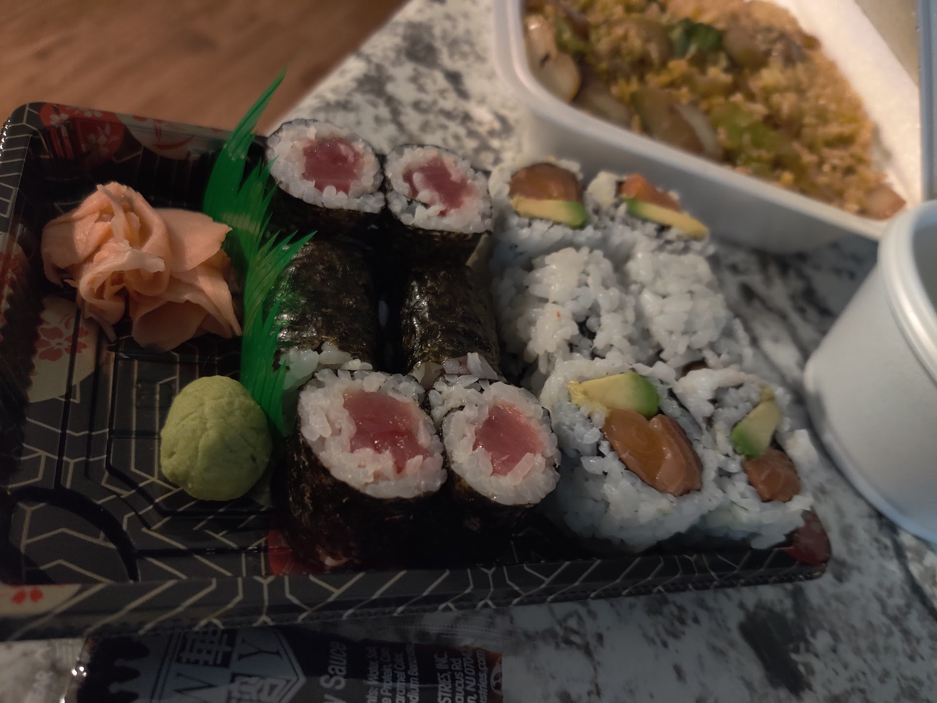 Usually a great place to eat, but not this time! Arrived at 5:30pm. Told there would be a 30 min wait. We were fine with that since it was just the two of us. We were seated with another group of 7 at the hibatchi grill. We had our drink orders taken immediately, but it was 10-15 min before getting drinks and our orders taken. Then another long wait. Finally got the salad & soup. Finished that off and waited. And waited. And waited. Was told there wasnt enough cooks, although 2 other grill areas that were seated after us were being served first. My so ordered sushi, but he too waited until I got up and went to the sushi bar where his order was sitting w/the ticket. I asked our waiter, who was busy talking, if that was our order. He replied yes & sprang into action-leaving the order sitting there to get something, but I got the plate and walked the order to my son at our table, where the waiter came & asked if he wanted sauce. He finished his plate before a chef finally arrived to cook our food. By this time it was 7:20pm. I was starved and ate my food as it came off the grill-one item at a time. Rice first. Waited. Then shrimp. Waited. Then steak. By the time I got the steak, I was full. I waited again, and finally got up, went to the sushi bar and asked for my own to go box. My receipt shows that my card was finally run at 7:48pm. Then waited for it to be brought back. We got to our car at 8:02pm- 2 1/2 hours later...ridiculous. And the hostess girl with long dark hair up in a bun with John Lennon glasses NEVER stopped cramming her mouth with food the whole time I saw her: during the 30 min wait, to/from the restroom, at the sushi bar coming from the kitchen, and leaving. She got to eat more than I did. Very unprofessional and scatter brained. Next time, I will go...