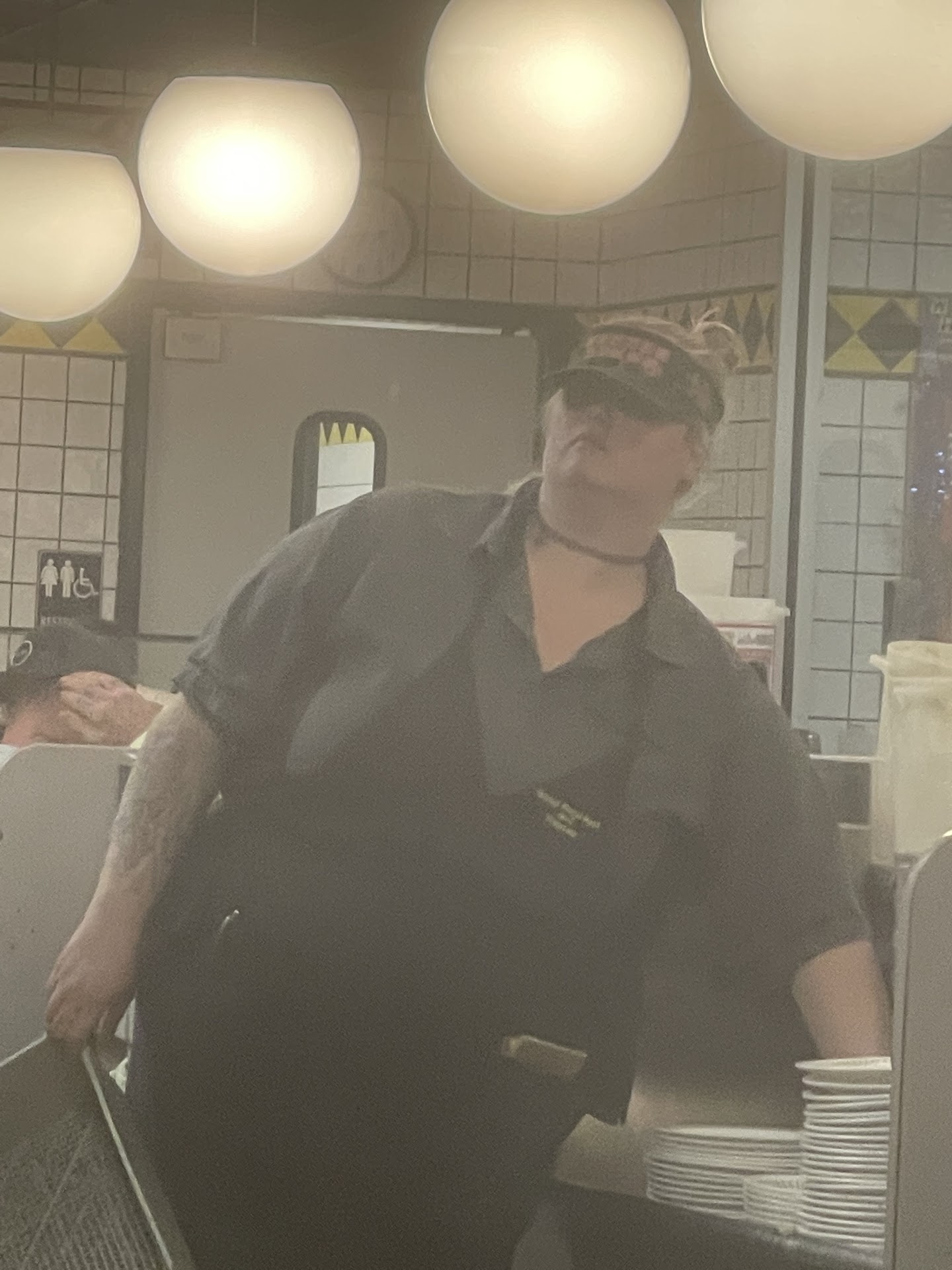 Read moreOkay, I'm sorry if this comes out as bad as it may sound... I like the food here BUT.... Good luck coming here in the evening. There is no place to sit ever not because their full they just pull out social distancing at night for the seating . Tonight was something more special "Take out only". I then got to witness about a dozen people come in and leave. Families and couples all coming for a bite to eat at around 10p.m. but not here the establishment that claims to be open 24/7 365. is definitely not. The past couple months they have been closed without warning ( no inclement weather either ). I also hate the fact that the servers are paid so low and are dependent upon tips. So when they make it to go only that hinders their ability to make decent money rather than 2.25 an hour. But who am I just an individual that comes in from time to time when I can tolerate the nasty store and the slow service. A shout out to to Shayia I believe that's how you spell it...she was a one woman show! She took all the orders and then began to cook the orders all without any help from her co-workers.5 Star ⭐⭐⭐s for her! This place lacks leadership and management. I worked at a waffle house before... The issues here are not only the employee's fault they stem from the management side of things. Try better guy's. This review is not just from today it's from multiple chances to have this particular waffle house provide decent service so...