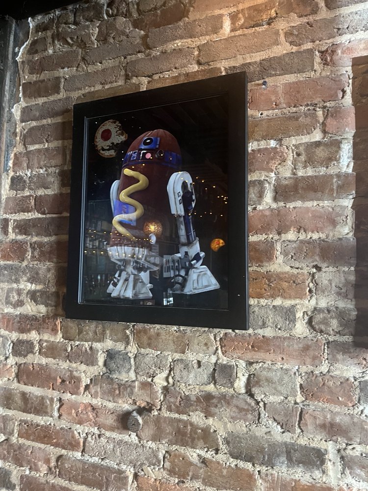 The interior decorations are very cool and fun. Lots of funky lights and funny art. There's a wall of fame for beer drinkers wherein their visages are put on top of hot dogs -- very nice. lol. My dad especially had a great time; he loved the music and the atmosphere.