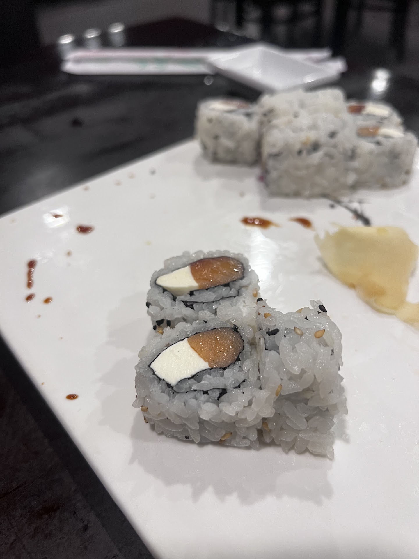 After ten minutes of looking at the menu and trying to figure out how it works-do we put our first initial by what we want? Do we pick from each category? Do we get another paper after this for additional rolls, or do you just get to try one and that's it? These are all questions we asked and did not get answers to at all when service came back. I don't know if she didn't understand, which is understandable to an extent, but you should be able to explain a menu to customers, bare minimum. A, "Have you been here before? No? Let me show you how this works," would have gone a long way. After her unwillingness, or whatever the hell you want to call it, to explain or give any help other than a nod or a "yeah", it just left a bad taste in our mouth. It was just the way she was acting toward us too, like it was an inconvenience to her that we were there.