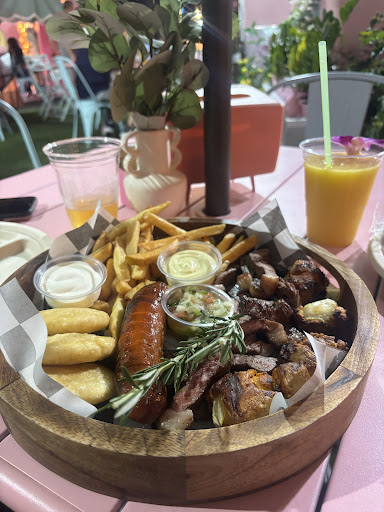 My first time going to this place that I had randomly found on instagram. It was truly delicious, I am a big steak person and my plate was so good and tasted really authentic. I also got the mango juice that tasted really natural, most of the time you don’t find juices like that. Split a plate with my partner and only spent $45 including my mango juice and a beer. I am also a big pink fanatic and seeing the whole place decorated in pink was so adorable. The vibes are so nice and I loved the live music they had. Unfortunately I didn’t get my server’s name but she was really sweet and checked in with us frequently. She also let us know that the food was going to take a little long in which I really appreciated the communication. Definitely will be...