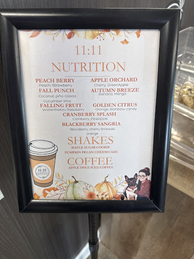 Ā Ā Ā Read moreWas craving a smoothie today and wanted a meal replacement type smoothie. 11:11 was the first place to pop up on my Google search. I was greeted upon entering and helped with all questions. I decided on "Chunky Monkey" and added strawberries! It taste like a pb&j with chocolate š I will say it is very filling but that is exactly what I wanted! Thank you...