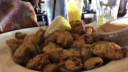 One second goes by, then quickly two, and our very lucid and happy bartender shouts-out and says, “Oh yes ma’m... the gator tidbits, should be out any time now!”
