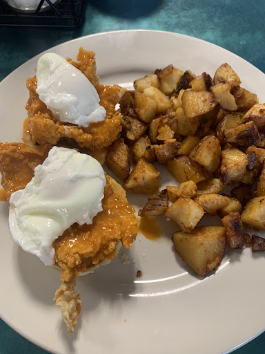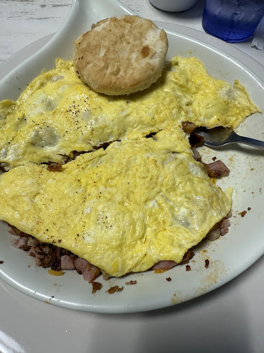 Read moreThis meat skillet isn’t your traditional setup where all the fillings are folded inside the eggs — instead, the hearty mix of potatoes, ham, bacon, and sausage is layered underneath, while the eggs are laid flat right on top like a cozy blanket. At first glance, it caught me off guard, but one bite in and it completely worked. The flavors still blend beautifully, with the crispiness of the potatoes and the richness of the meats adding a lot of depth. The eggs were cooked just right — soft, not runny, with a nice peppery touch. And let’s talk about that biscuit… soft, fluffy, and buttery, practically melting in your mouth. It might’ve only needed a pinch more seasoning throughout to really bring everything to life, but even without it, the dish was still delicious. This is definitely one of those comfort meals that...