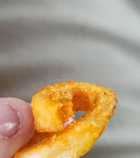 I don't know if you can see this but there is a hair wrapped around this curly fry I went up there before I had to go to work and spend my last $20 I had on a lunch that I was grossed out by and ended up throwing it in the garbage I had to go to work and I could not go back. When I got there I asked the guy if he could make new fries because I hate the curly fries when they're nuke warm they don't taste good I told him I'd wait till 5 minutes or the 10 minutes for a new batch he told me they just came up and they were hot they were not they were nuke warm like they've been sitting there for a minute. They were not hot. I like that they just came out. I leave my fries in the bag because it keeps them warm I pull them out one at a time when I am eating them like most people do and I pull one out go to stick it in my mouth and something tickles my mouth I pull it out of my mouth and look at it and there's a freaking hair wrapped around it. I could not tell you how bad that grossed me out. I do not live or work close to Arby's so I have to drive a good bit to get there just to come there to get food and leave and hope I make it to work because that area has no turnarounds you have to go to a light to turn around because of the road work it's very inconvenient. If I would have known that I was going to get a hair in my food and it disgusts me to the point I didn't want to eat my sandwich cuz God knows what's on that because if they're not protecting their food from the hair from their head to get on the fries I don't want to know what they're doing in the back of the kitchen where no one can see them if they have a hairnet on or not. It was about 6 months the last time I went there. I didn't get to eat it very often, and now I will not be back probably ever. The last place I got a hair in my food I never have been back and that was years ago I'm not going to name the restaurant butt this is how you lose...