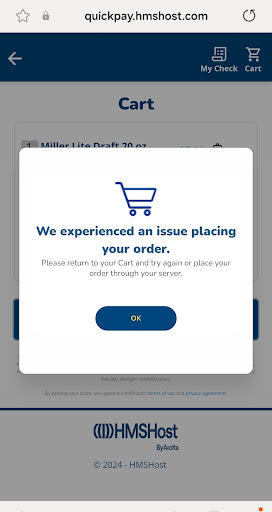 Read moreThe staff is friendly, yet super busy, plus they do deal with lots a "bad" travelers. So I sat down at the bar 1-30-2022, 2pm, since i flew via RSW weeks prior i noticed the tv still posted a sign stating Direct TV was out/broken. A employee confirmed it was down, and it had been down for more than a month, maybe even 8 weeks. I asked why no fix and apparently is was a Direct TV issue, and something about a storm. Okay, seated next to the beer taps and unfortunate the 3 compartment sink used for washing glass ware, with my N95 mask on I noticed a stench, i bloody thought they just cleaned the grease trap but after a little time i suspect the trap below the sink is fouled up. Both my bar mates, left and right noticed this too, we hung in and had our beverages. Super simple fix for a stinky sink/drain,plus the fruit fly issue in the place is also an issue. I didn't approach any manager as the place was slammed plus continuous negative sounding chatter amongst the staff I sensed all were stressed. I am a chef myself and know the intensity can affect a fast paced environments. Ii am writing to HMS Host who manages the restaurant so they can help the location. With ultra high airport pricing i believe we all should enjoy no stench, no fruit flies or a tv that is...