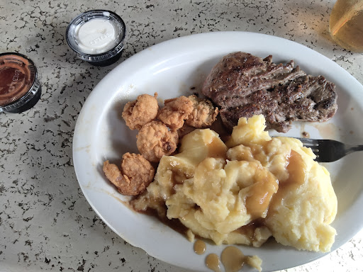 We arrived today 10/9/2022 for dinner. There was no one to seat so we just found a seat. A female server came to our table got the drinks which was totally acceptable time wise. She came back clearly she didn't know the menu. As I ordered the 6oz steak she tried to tell me it didn't come with a salad. So I pointed it out well it does come with salad she never asked how I wanted the steak cook so I reminded her I wanted RARE with A1 steak sauce. When the food came I was blown away the mashpotatoes was way under 1/3 of a cup like 2 half bites no joke. She left the food before I could ask for the steak sauce. We ended up finding a guy for the sauce. The Ranch was Watery. ++ Steak was cooked prefect good job chef++ Was never offered refills. Never checked on. We had to ask for check. Would I return? Yes but not anytime soon for the sole reason because the steak was cooked right. RARE you nailed it good job there. Noise level. It's a sport bar expect loud. Other guest was having a good time which is good. SUGGESTIONS * Get kisok for table More help to...