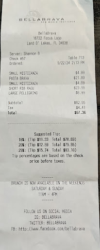 Read moreThe absolute BEST restaurant experience I've had in a LONG time. It started off with actual straws. Its the little details that matter. We started off with some appetizers - some meatballs and Focaccia. Nothing amazing, but a solid start 8/10. My family ordered the Short Rib Ragu, a stone-fired Margherita pizza and I ordered the American waygu burger. The burger was amazing - and had REAL bacon. Not pre-cooked, refrigerated strips of fat... real, honest bacon. The burger itself was ridiculously good. Per my wife and daughter, the Short Rib Ragu was a 12 out of 10. They both absolutely loved their dishes. My son ordered the pizza. Its big enough for 2 'normal people', or one (very picky, chicken-nuggets-only) 13 y/o boy. I asked for some garlic powder for my fires. A simple request. Daniil, our waiter brought back freshly diced garlic. To say the taste was only slightly less than a religious experience would not be an understatement. This was by far the best garlic I've had in YEARS - and I'm one of the American Fat-guy statistics. I know its "just garlic", but WOW... Last up was the Tiramisu - I generally don't dig into these sweets, but this at least had to be tested / tasted. Again, a 12/10 with crushed lady-fingers covering the dish. I've not had food of this caliber in several years. Our waiter Daniil, treated us very well and was awesome. I felt it only right to buy the kitchen a round of beers. The Manager stopped by to check on us and I let him have it. He's probably still wondering why someone was so impressed with "just garlic". Its the little things. Real straws (yet still compostable), and Garlic. and EVERYTHING else in between. The restaurant was very clean and even had a very clean, 'airy' smell, if there is such a thing. We will definitely be back. Its our new Go-To for Italian and other food when we're...