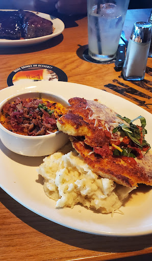 I ordered the Parmesan Crusted Chicken with Mashed Potatoes and Cous Cous Mac & Cheese....the Mac & Cheese was a $2.65 up charge but well worth it....it has fresh basil and bacon on top with so much delicious yummy cheesy goodness. Their mashed potatoes taste homemade and are seasoned perfectly and super delish. I can't say enough good things about their crispy and oh so yummy Parmesan Crusted Chicken....I have been craving it ever since the Christmas party!! I had enough leftover for another full tomorrow as sides are plentiful and you get 2 nice size pieces of chicken with the meal. There is like a butter lemon sauce on the chicken woth fresh basil and sun dried tomatoes.
