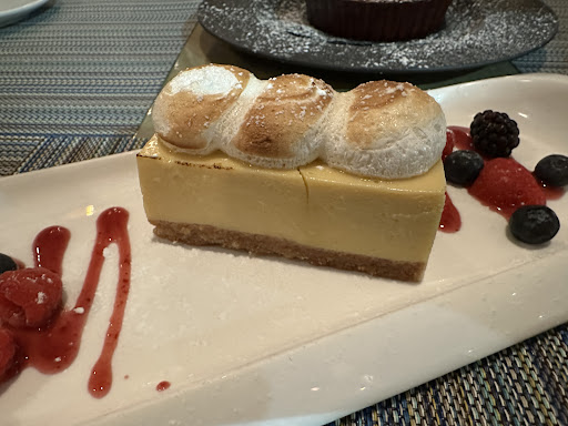 The Jumbo Lump Crab Cake with roasted corn salsa, grape tomatoes, baby arugula, garlic-cilantro- chili aioli is a real winner. My entre tonight was fantastic. Jumbo Lump Crab Stuffed Giant Shrimp, sweet pea risotto, white wine lemon butter. Loved it! Tuna Steak, crispy fried rice cake, stir fried vegetables, garlic chili aioli, tomato salsa was also a winner. CrĂšme Brule and Key Lime rounded out another great meal here.